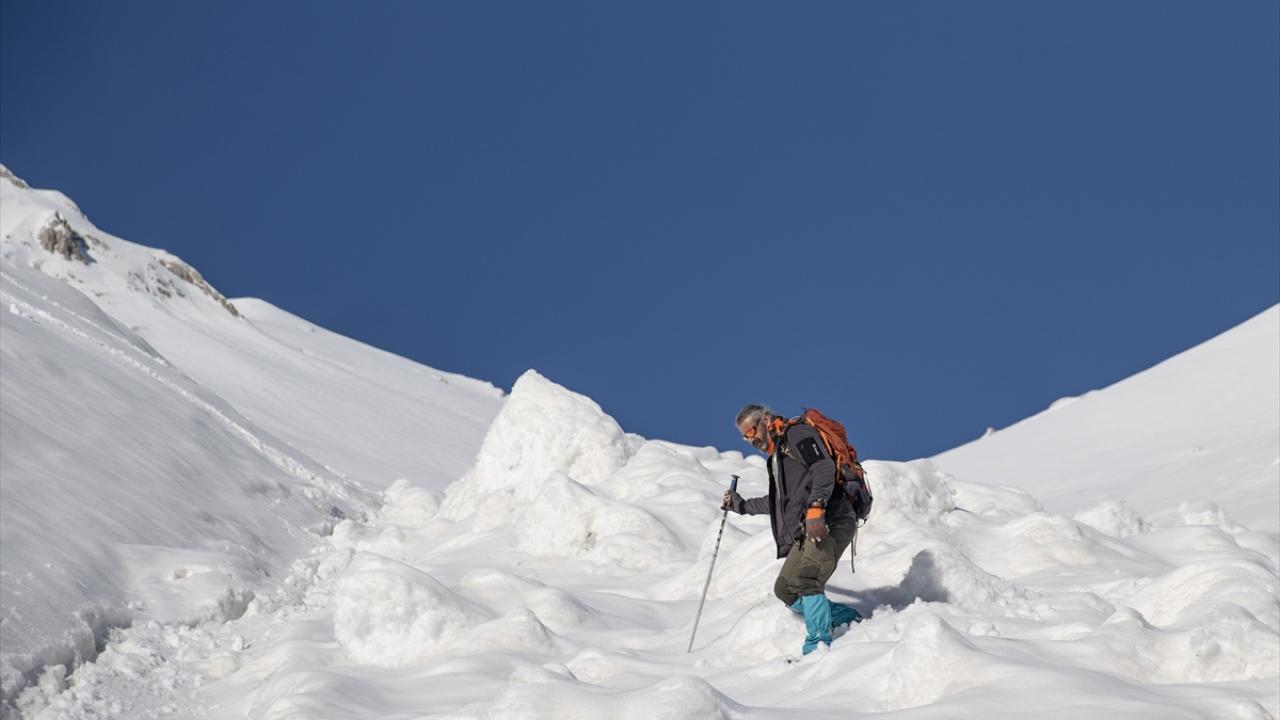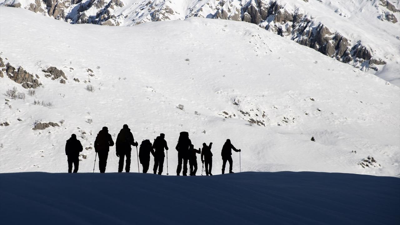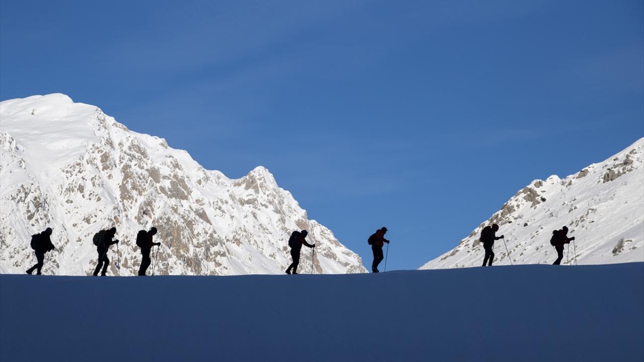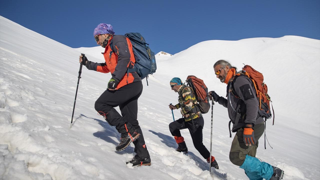 Araçlarıyla Gözeler köyüne bağlı Elbaba mezrasına gelen 10 dağcı, gerekli hazırlıklarını yaptıktan sonra beyaz örtü üzerinde tek sıra halinde yürüyüşe geçti.