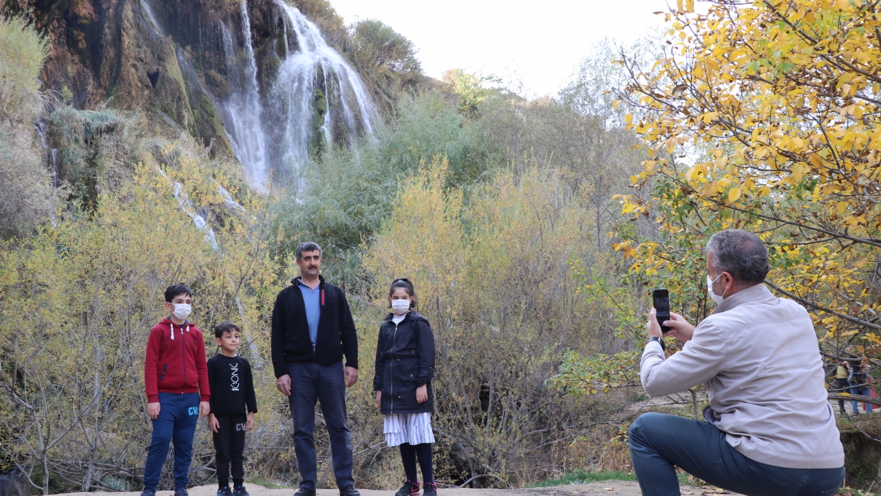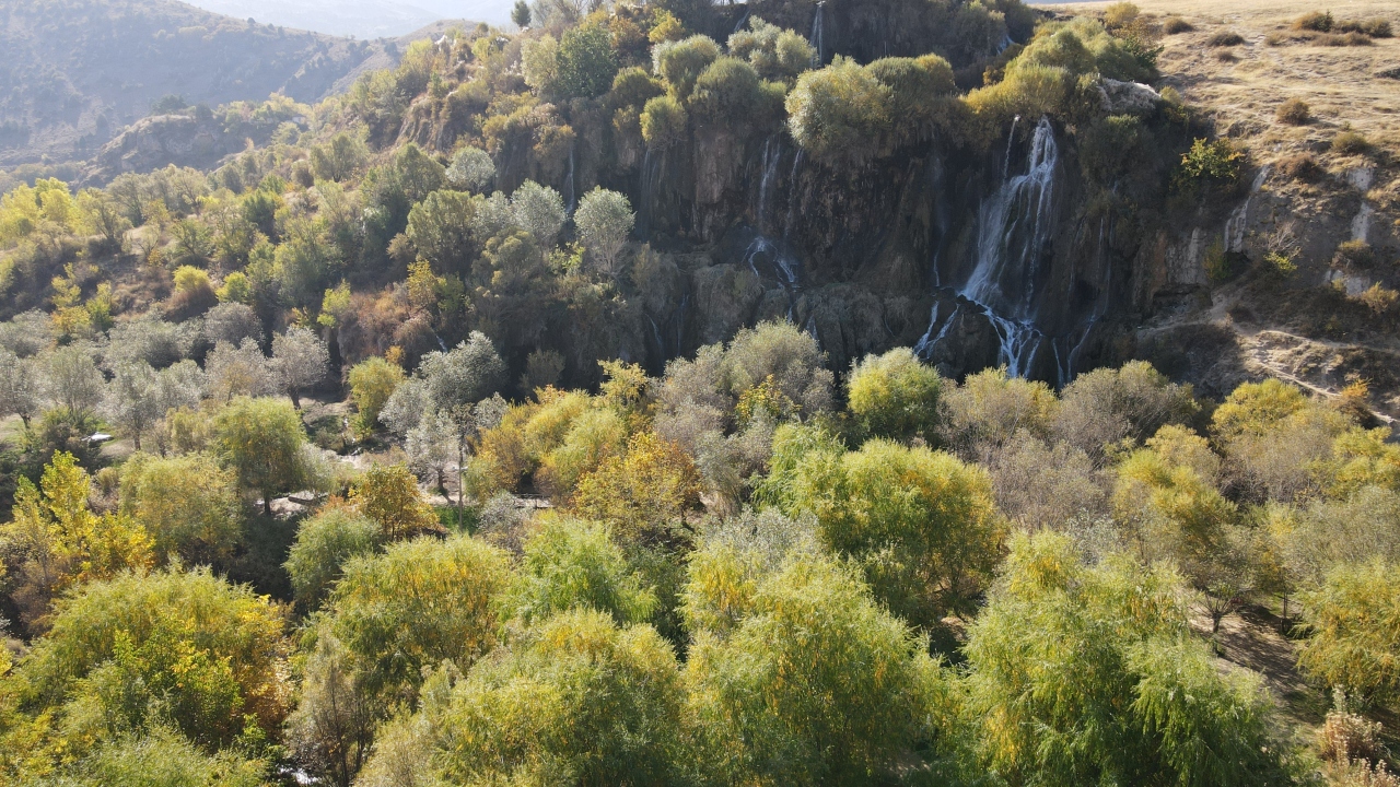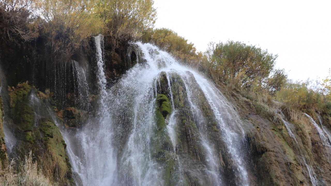 Erzincan'da doğal güzelliğiyle öne çıkan ve kışın suları tamamen donan Girlevik Şelalesi, sonbaharda sararan yaprakların oluşturduğu renk cümbüşüyle ziyaretçilerini cezbediyor.