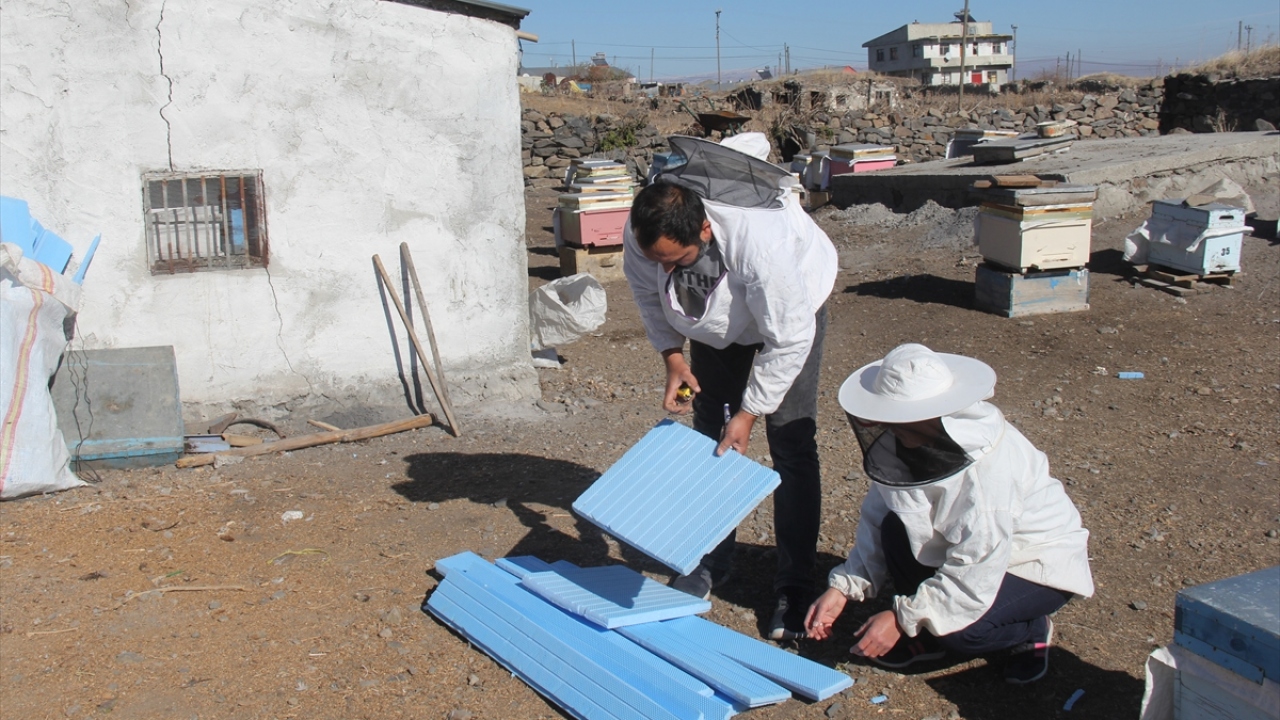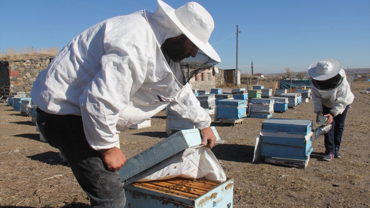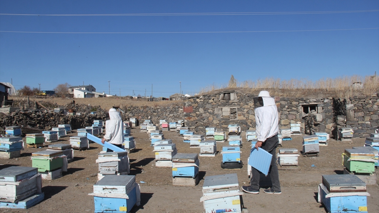 Türkiye'de bal üretiminin önemli merkezlerinden Kars'ta, soğuk havadan koruması için yayladan getirilen arıları kışlatma çalışmaları başladı.
