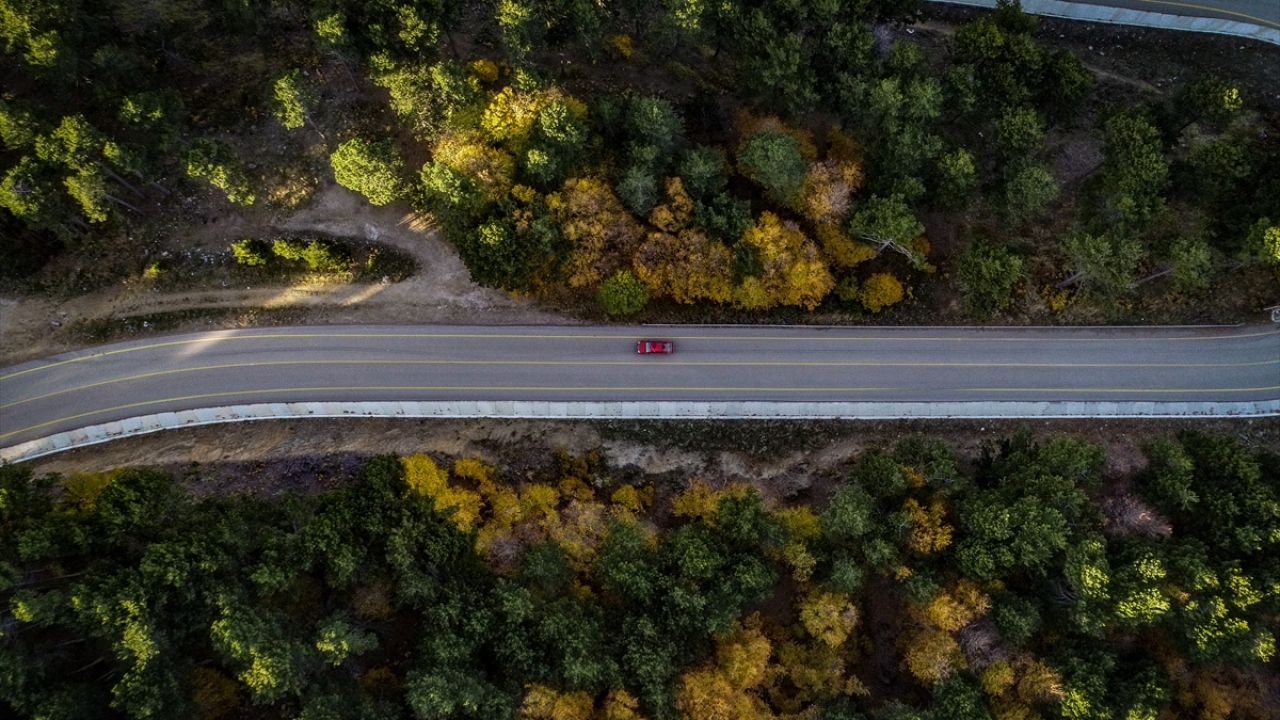 Uludağ`ın eteklerinde yeşilden sarı, kahverengi ve kırmızının farklı tonlarına dönen ağaç yapraklarının oluşturduğu renk cümbüşü, kara yolunu kullanan ziyaretçiler için de keyifli bir güzergah sunuyor.