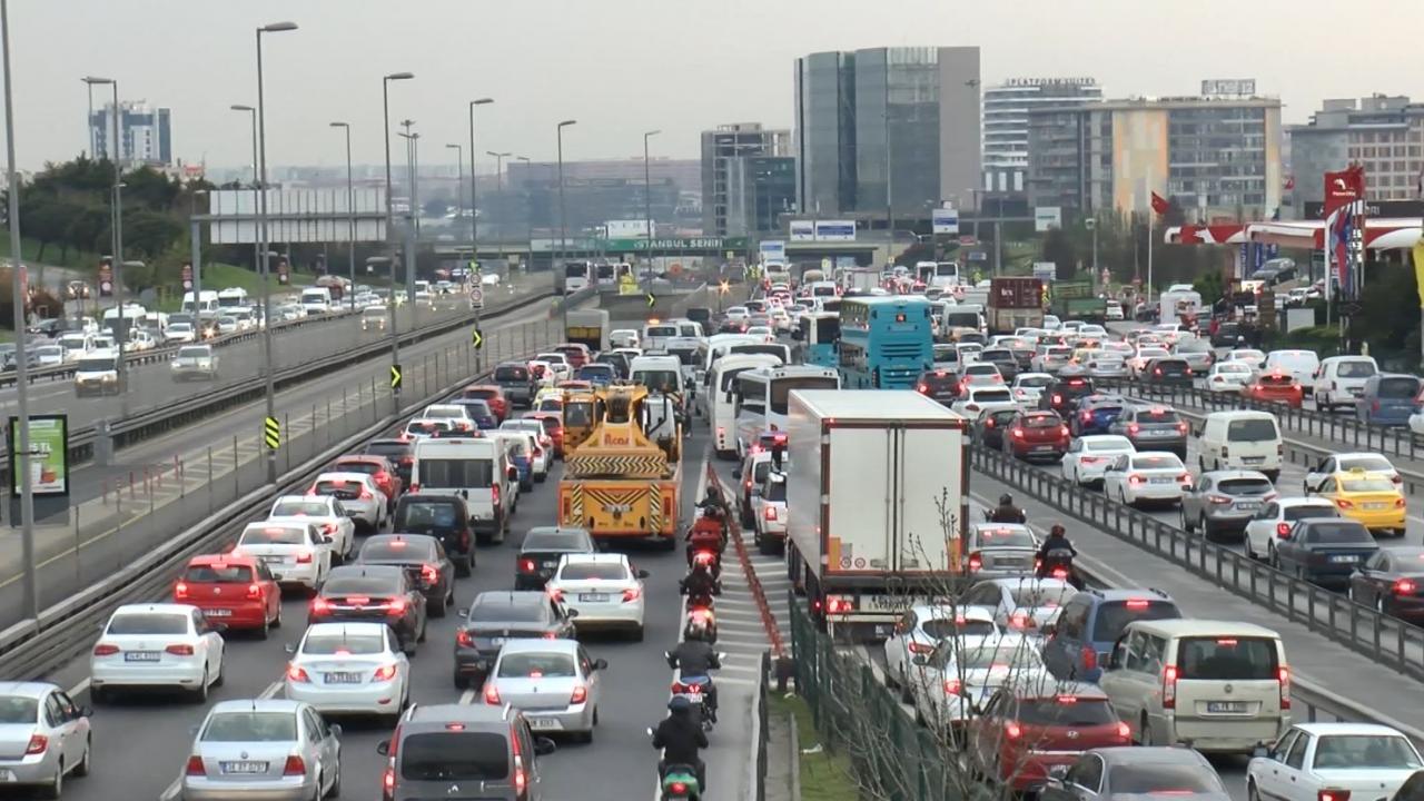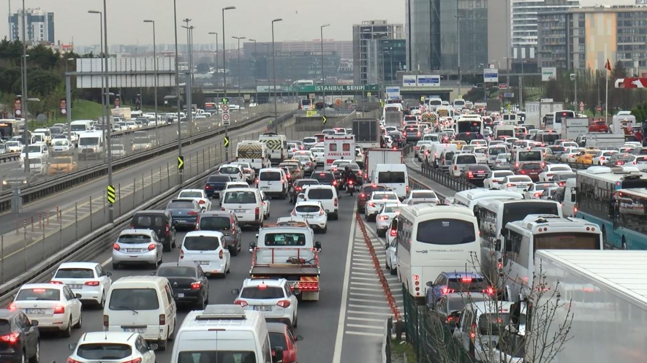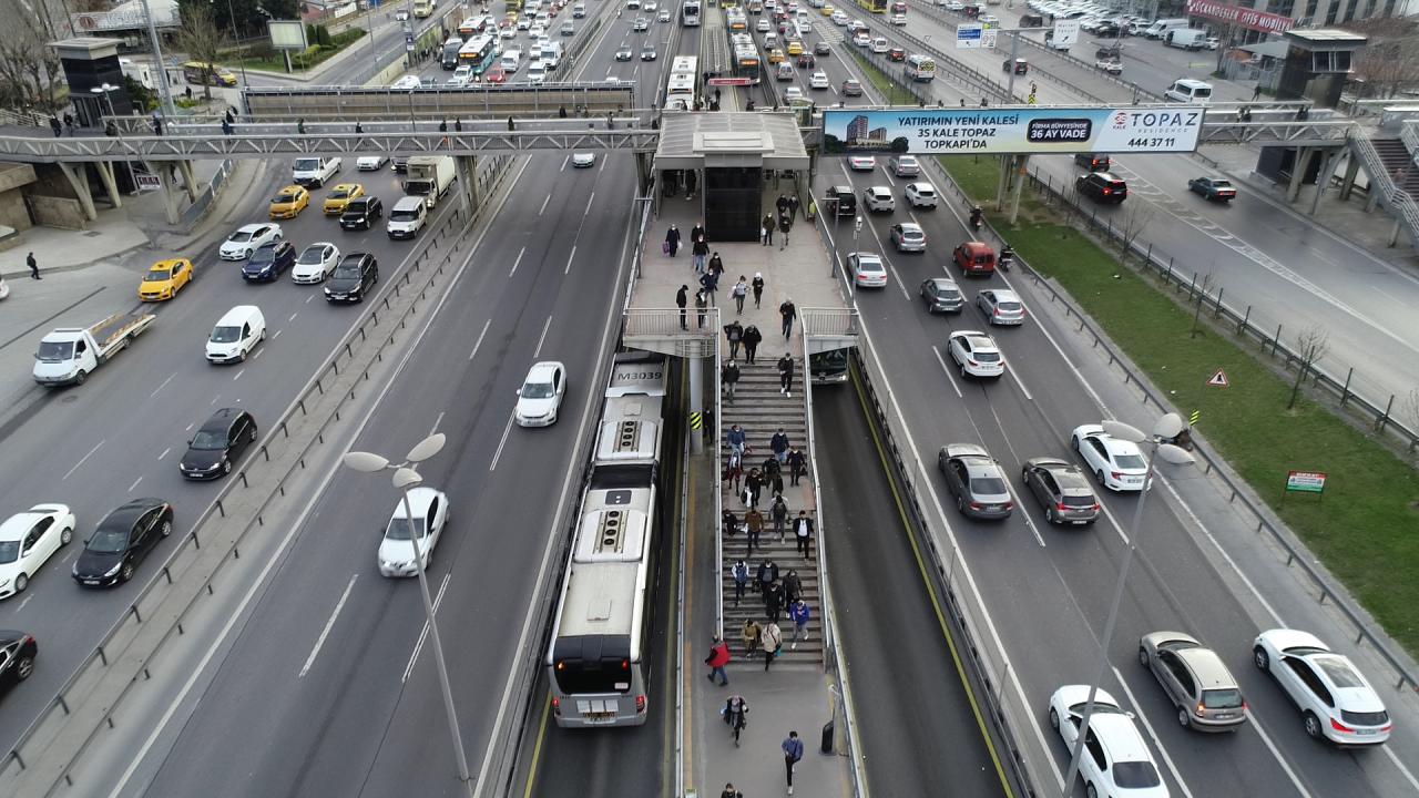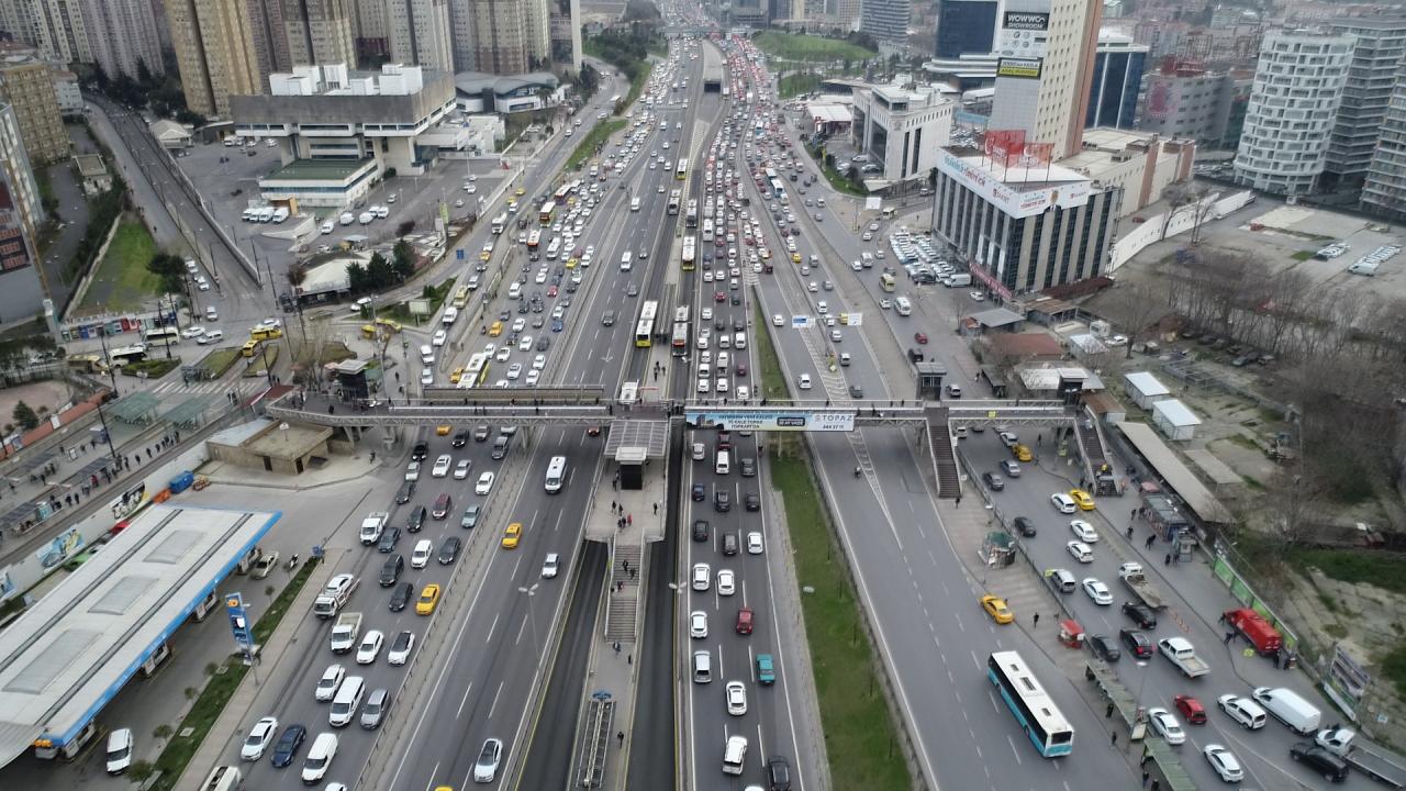 Öte yandan Cevizlibağ D-100 Karayolu`nda yaşanan trafik yoğunluğu havadan görüntülendi.