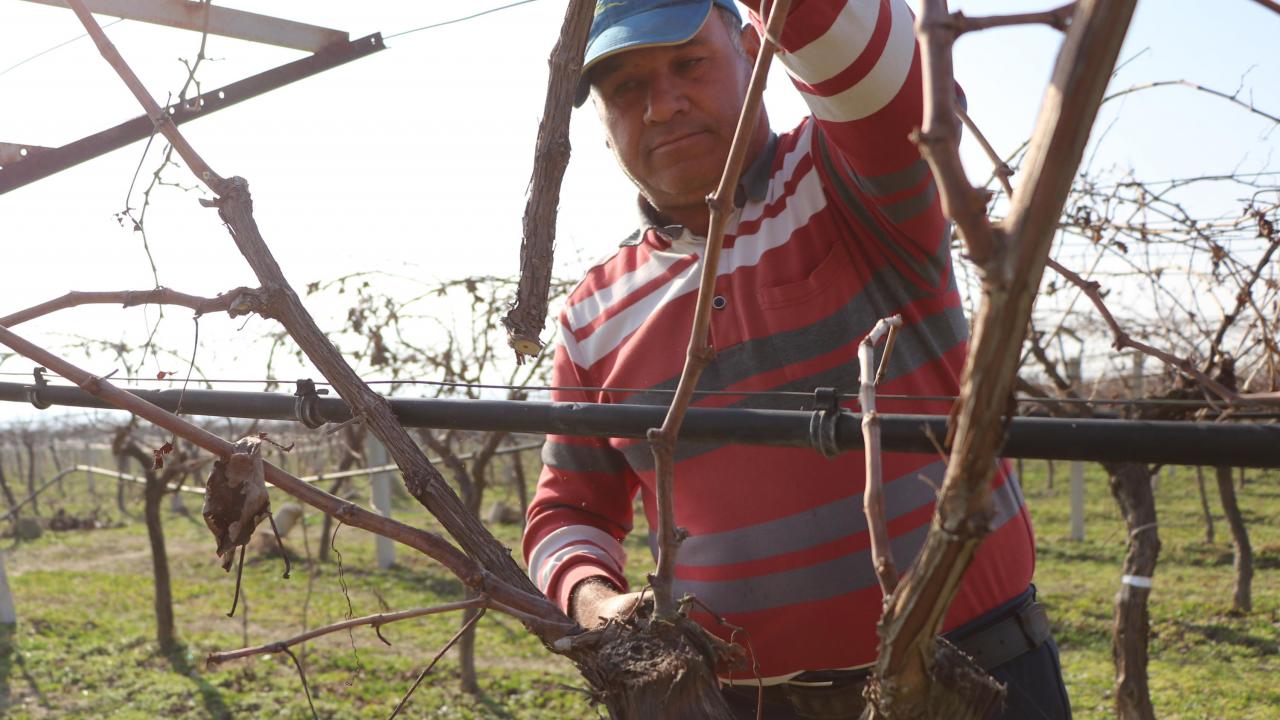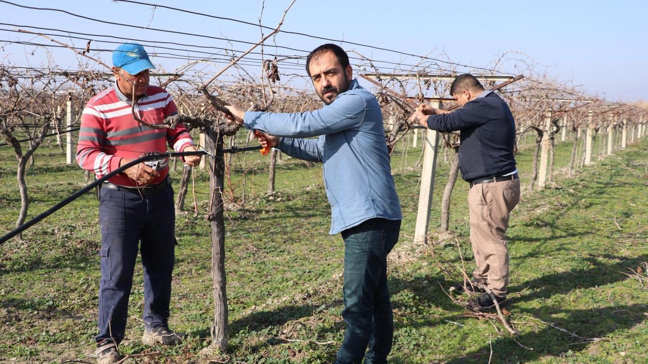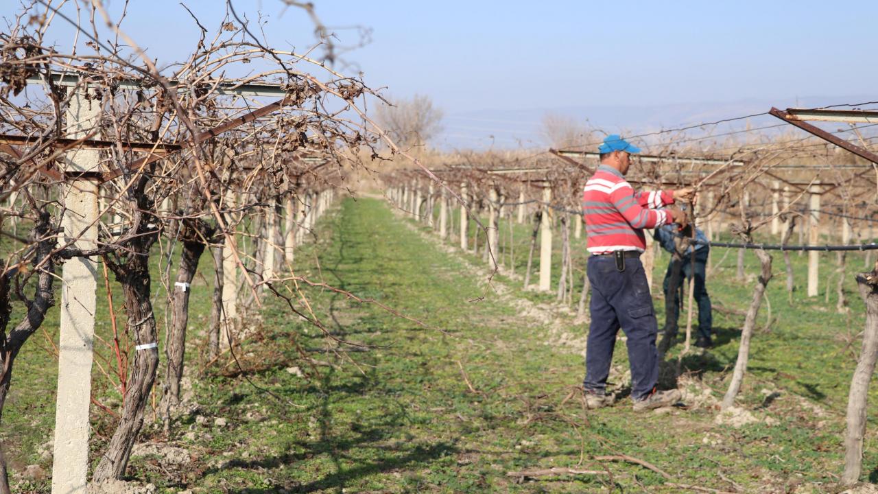 Pamukkale ilçesinde sokağa çıkma kısıtlamasından muaf olan çiftçiler, yerli üretime destek vermek için günlerini tarlada çalışarak, geçiriyor. Genellikle üzüm, nar ve ayvanın yetiştirildiği Pamukkale Ovası'ndaki tarlalarına sabah erken saatlerde gelen çiftçiler, üzüm bağları başta olmak üzere fidanlarının bakımını yapıyor.