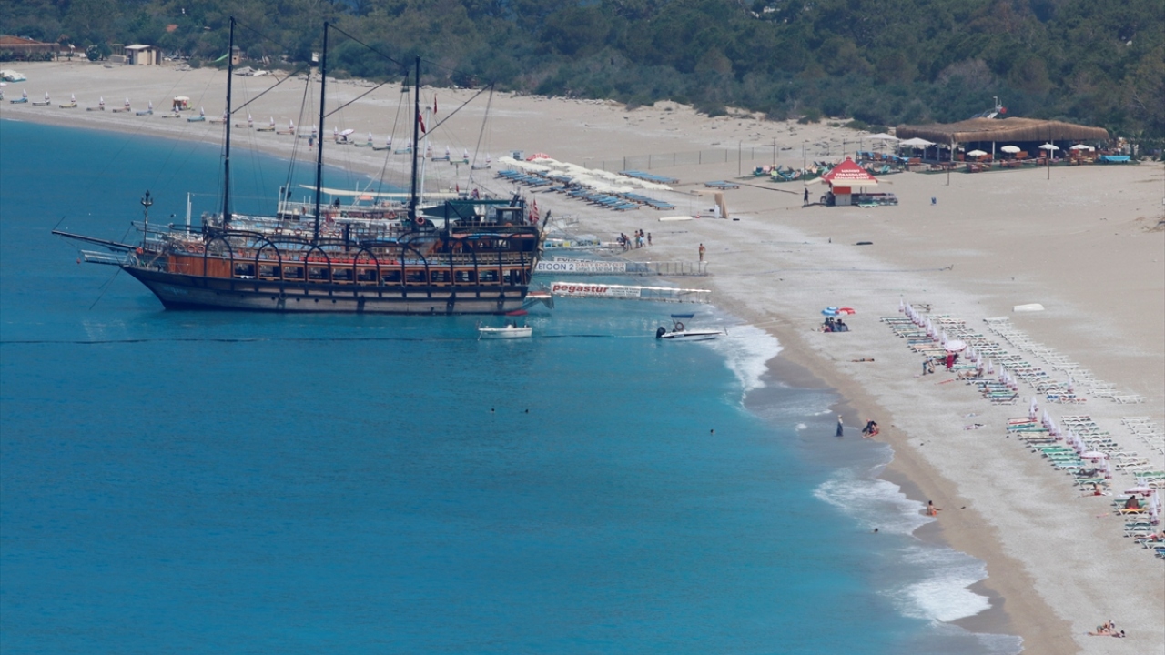 Muğla'nın turistik ilçelerinde yeni tip koronavirüs salgını tedbirleri kapsamında YKS dolayısıyla hafta sonu uygulanan sokağa çıkma kısıtlamasından muaf tutulan tatilciler, deniz keyfi yaptı.