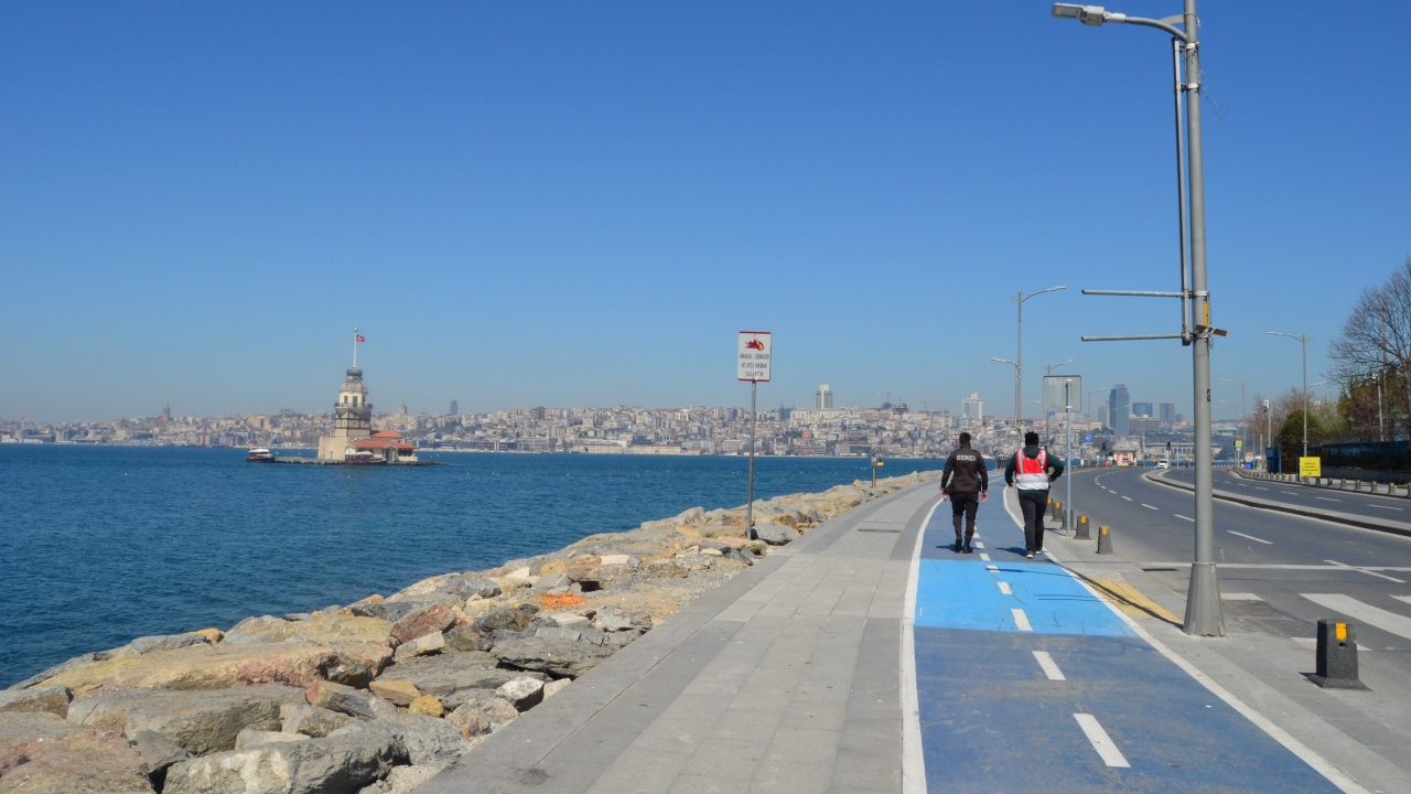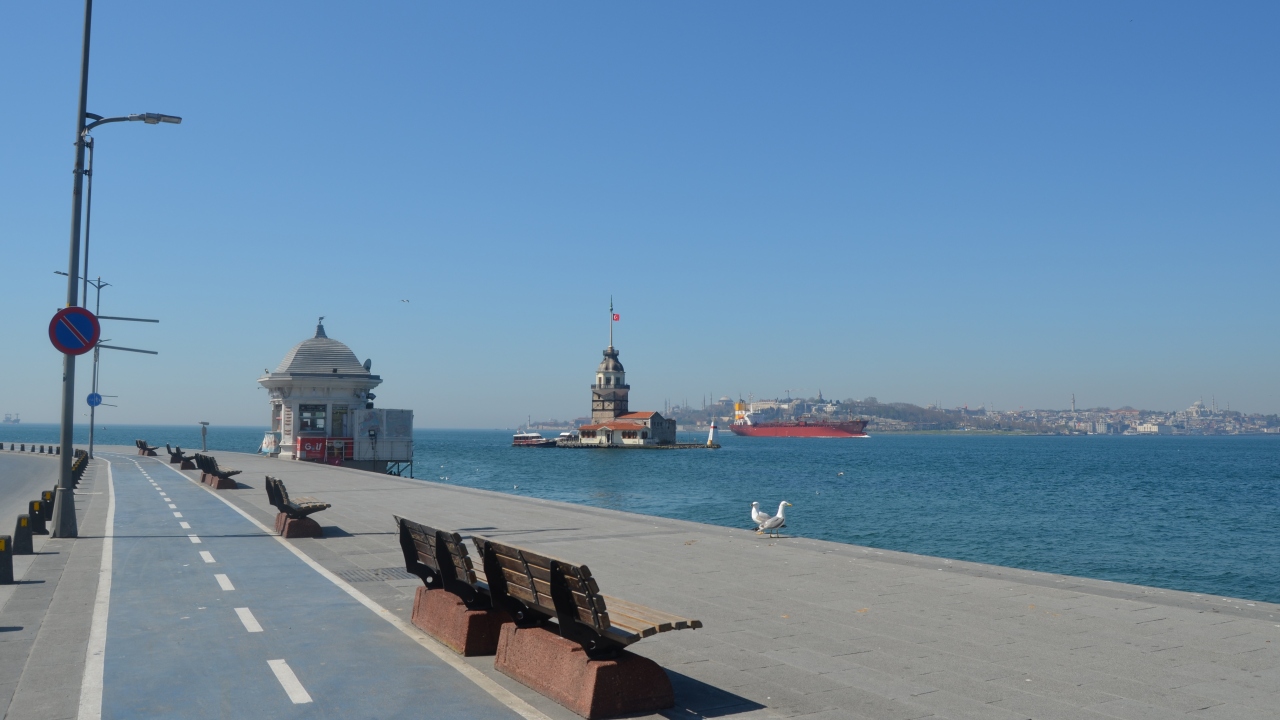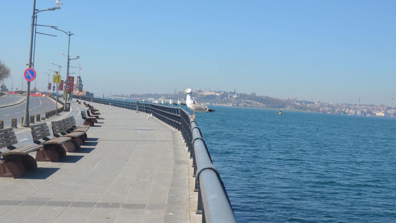 Kız Kulesi manzarasıyla binlerce ziyaretçi ağırlayan Üsküdar'da, kalabalık görmeye alıştığımız meydan ve caddeler boş kaldı. Sahilde ise sadece martılar vardı.