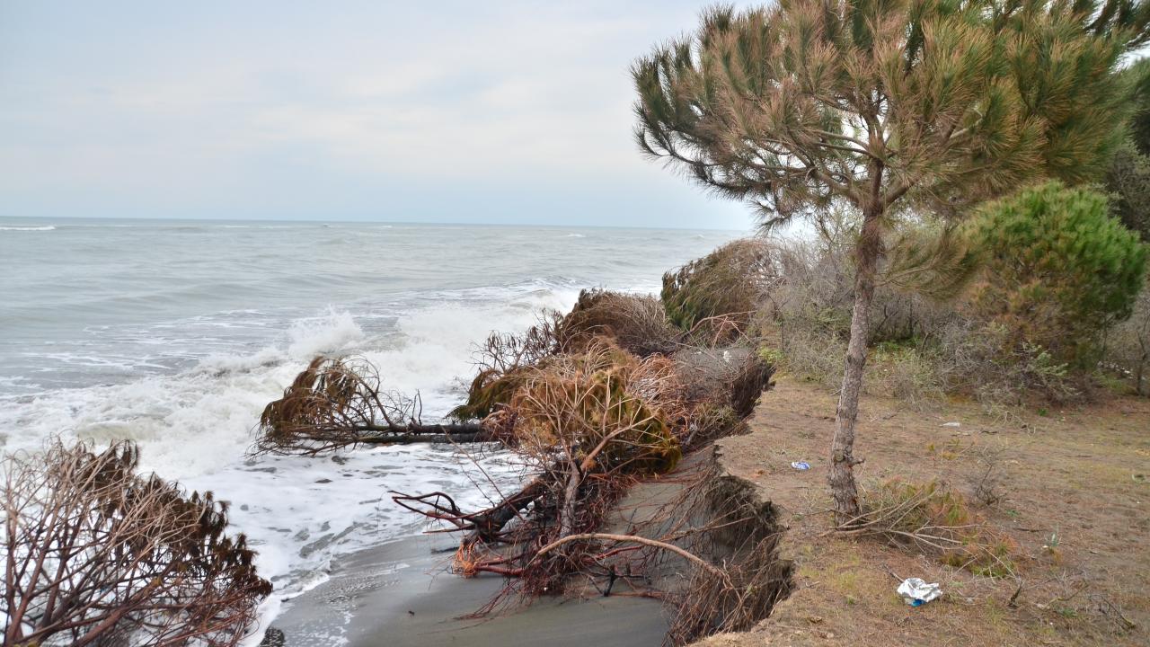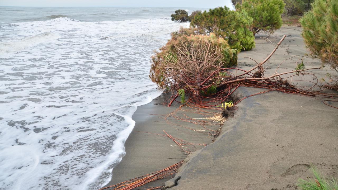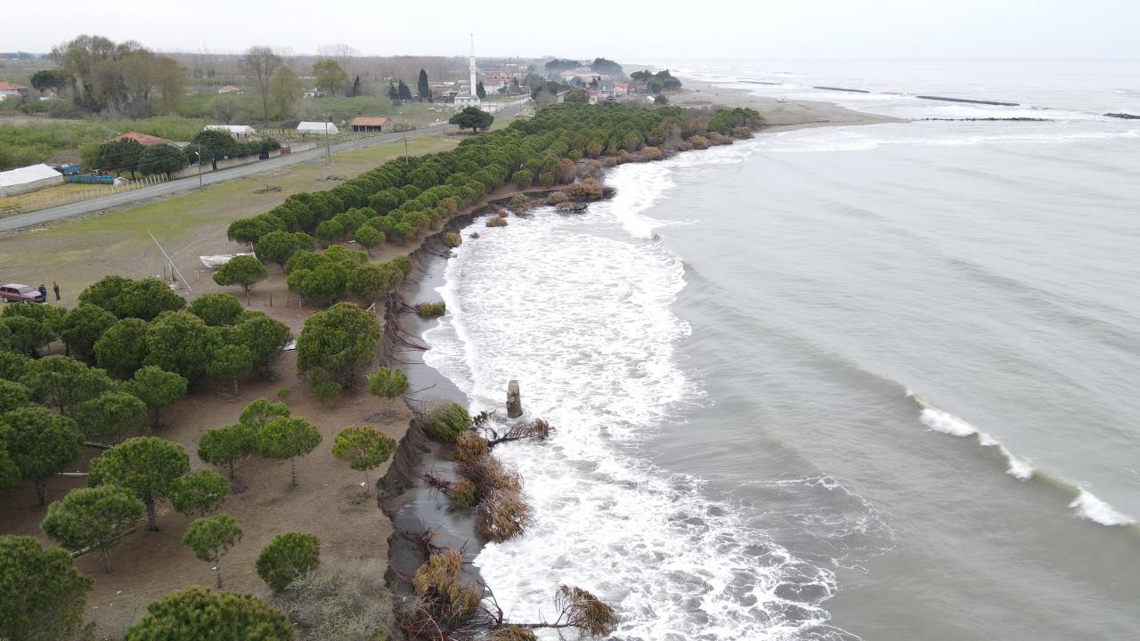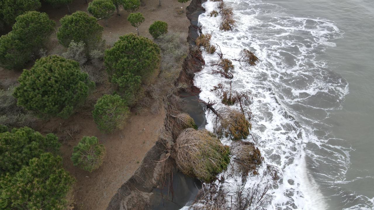 Samsun’un Terme ilçesinde yaşanan kıyı erozyonunda sahil bölgesindeki 150 metrelik kumsal alan ile çok sayıda ağaç deniz sularında yok oldu.