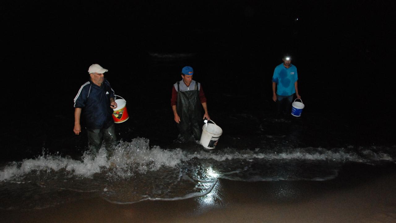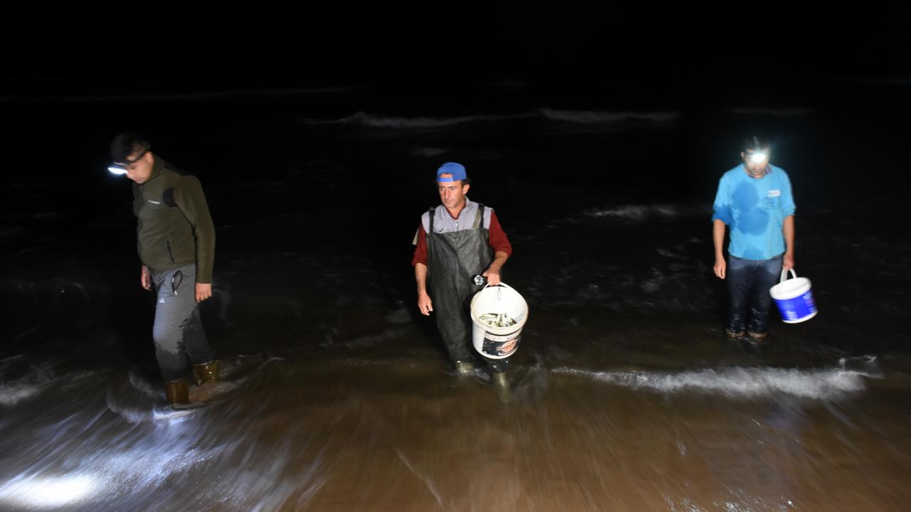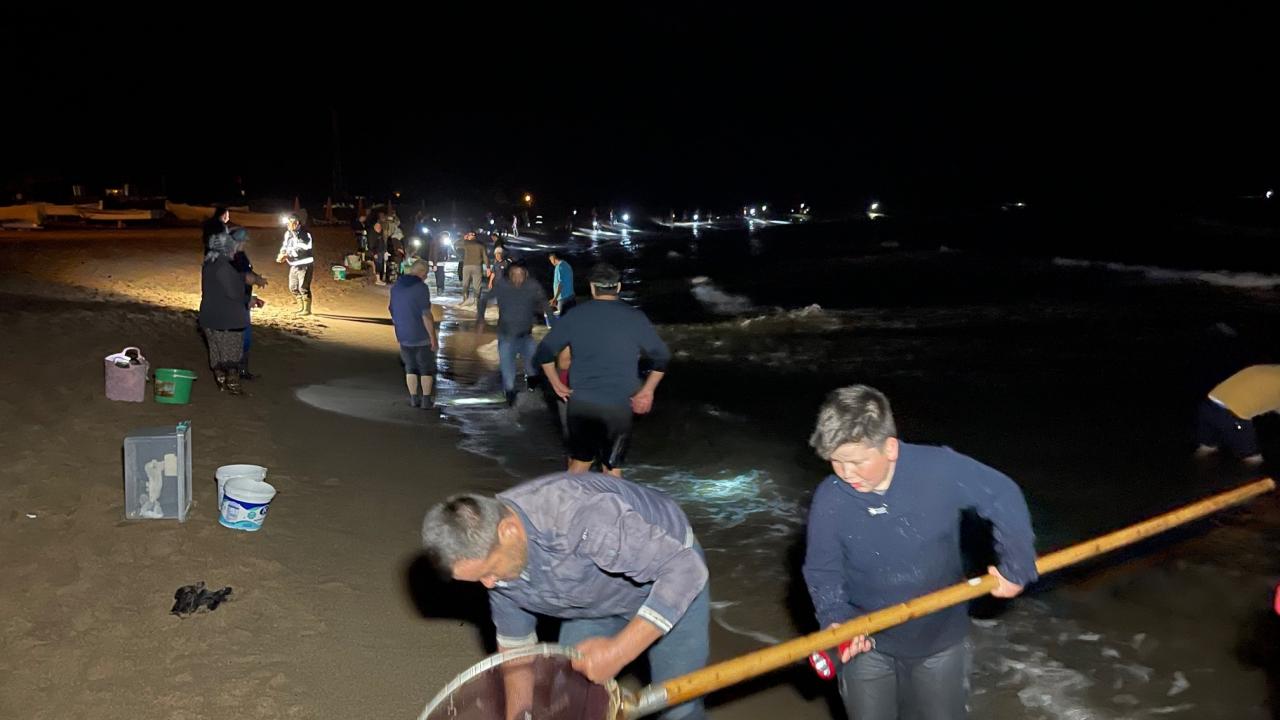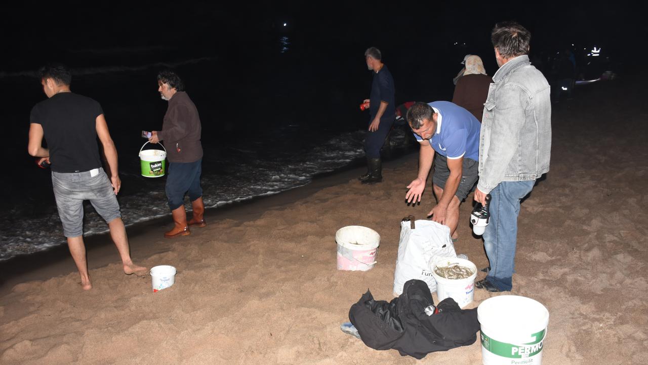 Kadını erkeği çok sayıda vatandaşın ellerinde fenerlerle kıyıda biriken balıkları topladığı anlar ilginç görüntü oluşturdu.