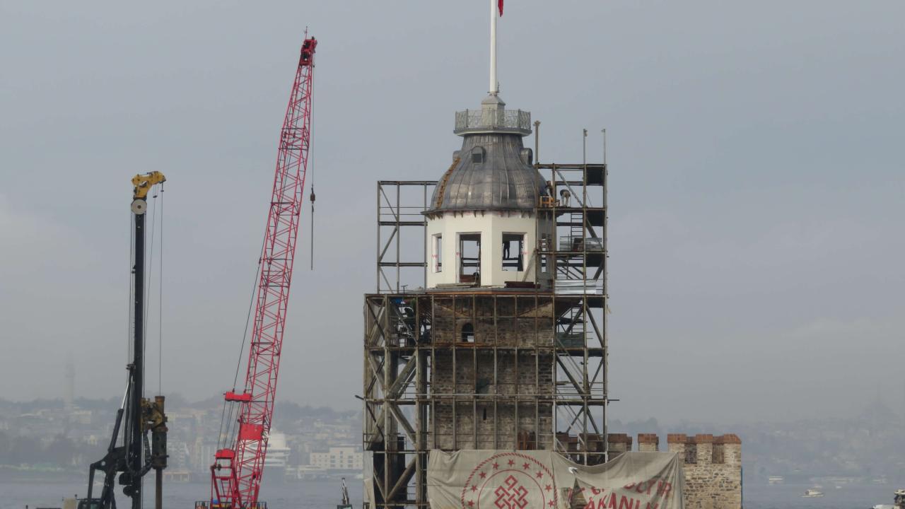 Yapılan çalışmalarla Kız Kulesi`nin üst tarafında bulunan iskelelerin sökülmesinin ardından kulenin kubbesi ortaya çıktı.