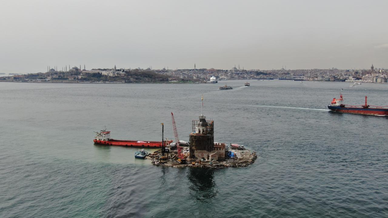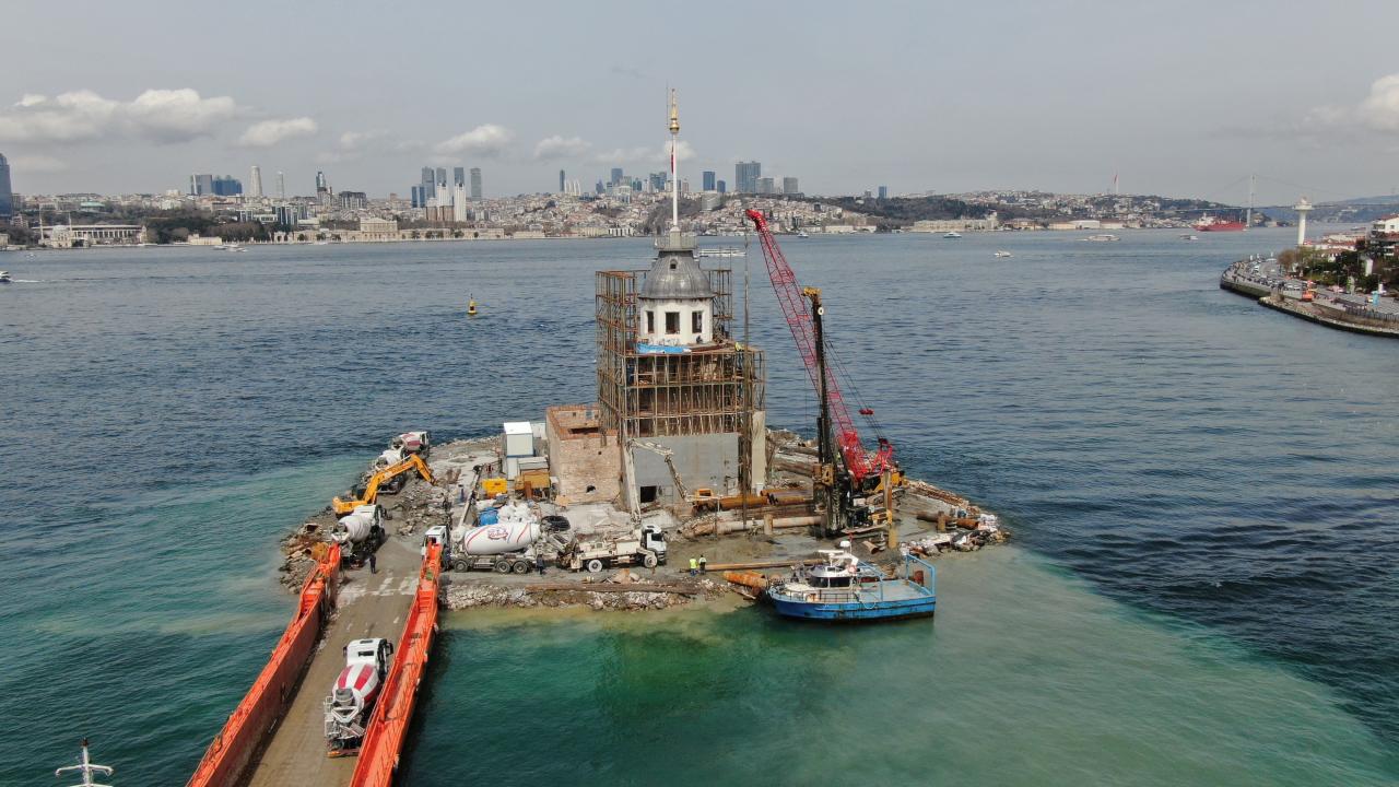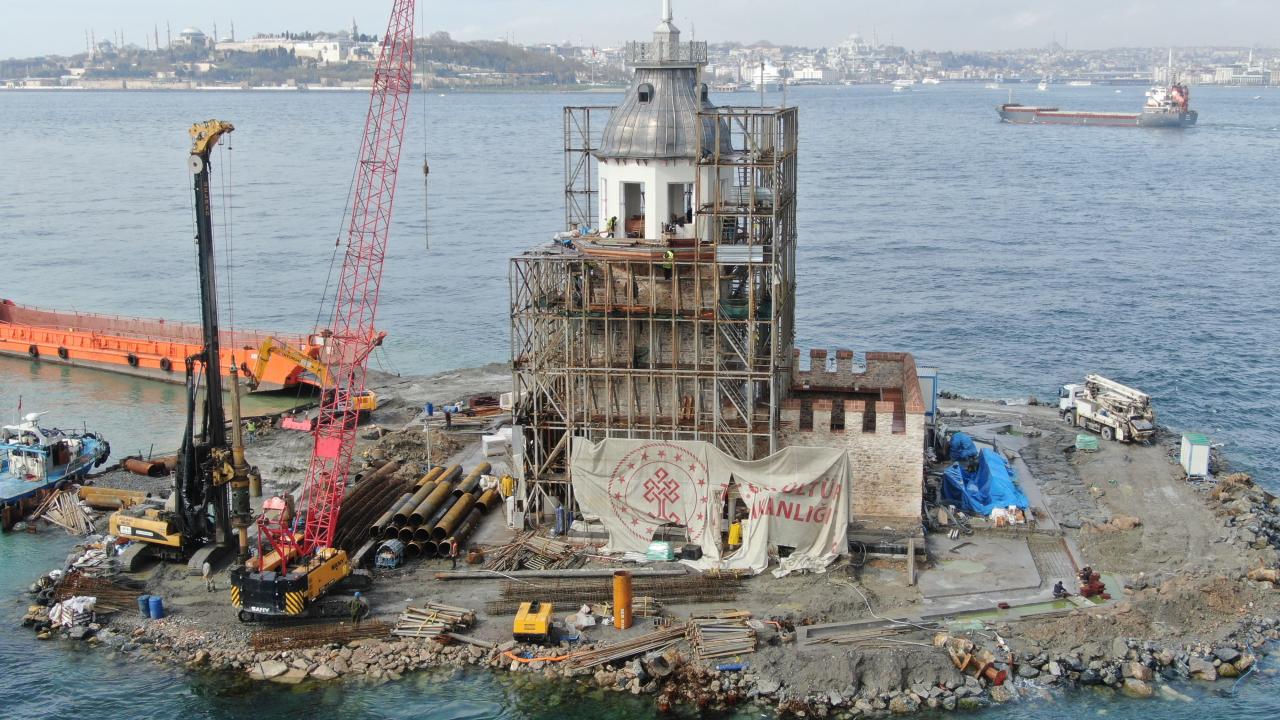 2021 yılından itibaren restorasyon çalışması devam eden Kız Kulesi’nin üst kısmında bulunan iskelelerin sökülmesinin ardından kuleye ait kubbe ortaya çıktı. Ortaya çıkan Kız Kulesi'nin kubbesi havadan görüntülendi.