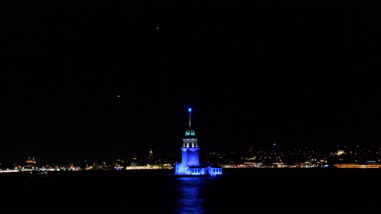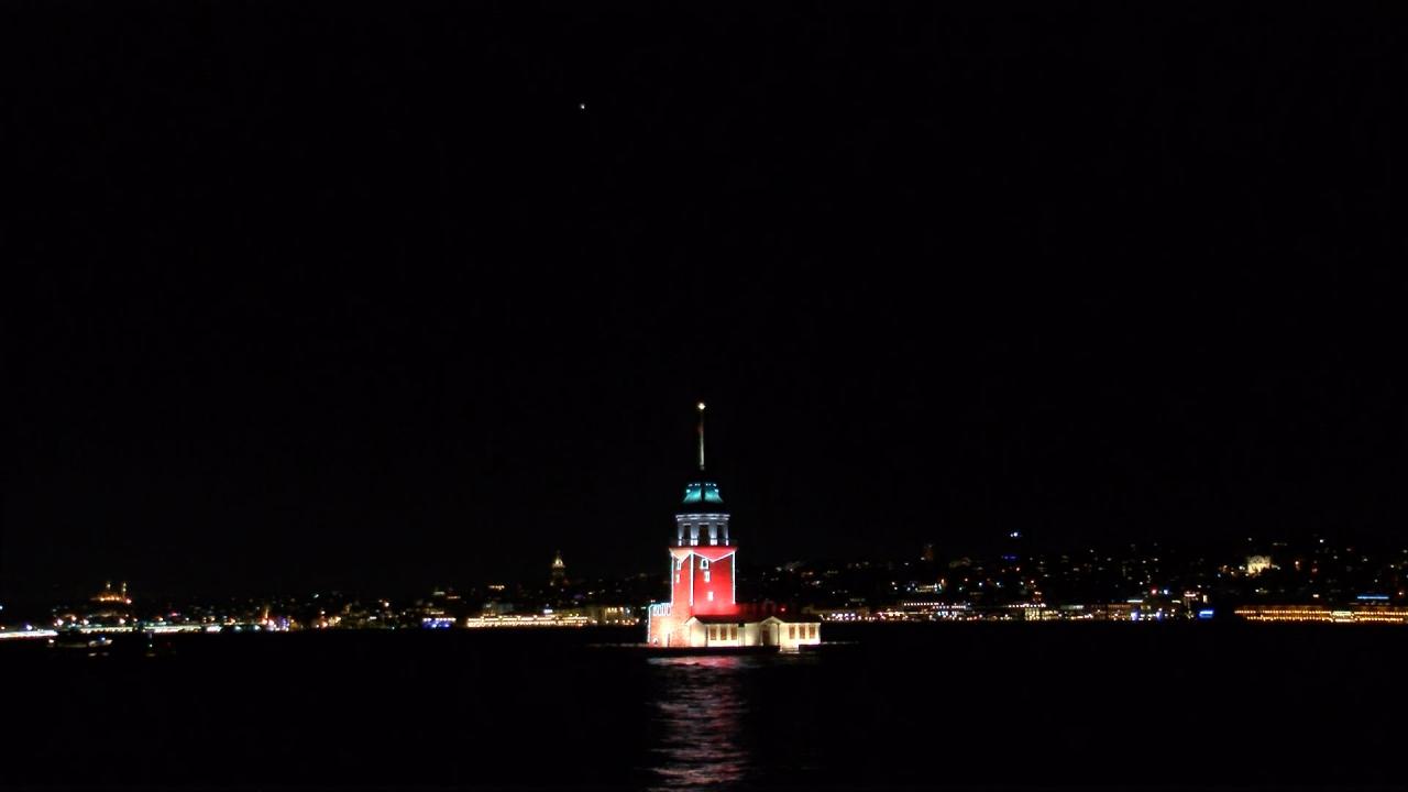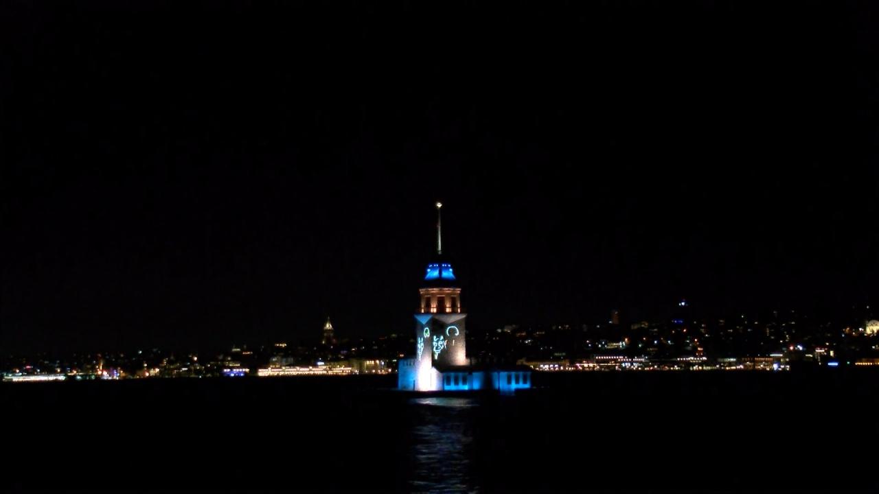 İstanbul`un sembollerinden tarihi Üsküdar Kız Kulesi`nde gece saatlerinde ışık ve lazer gösterisi düzenlendi.