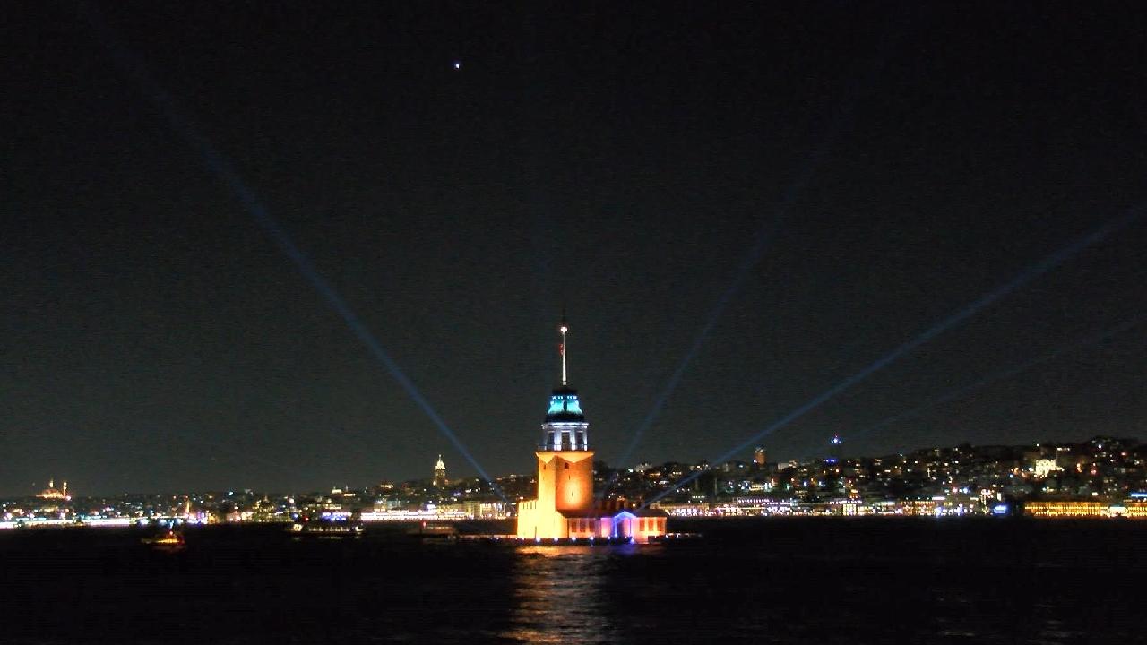 Üsküdar Kız Kulesi'nde ışık ve lazer gösterisi düzenlendi. Sahilde toplanan vatandaşlar, fotoğraf ve video çekerek o anları kaydetti.