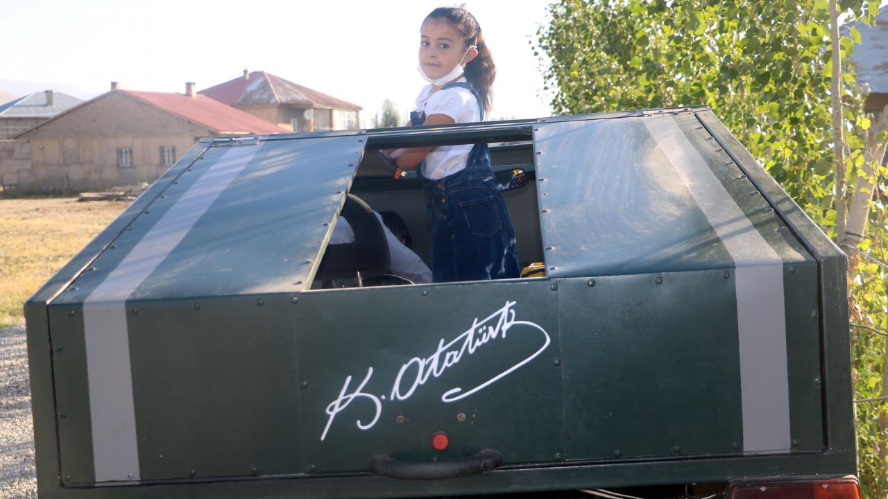 Mehmet Şerif Karahan, eksiklerini tamamladığı aracıyla ilk iş olarak da bugün kızı Hira’yı okuluna bıraktı.
