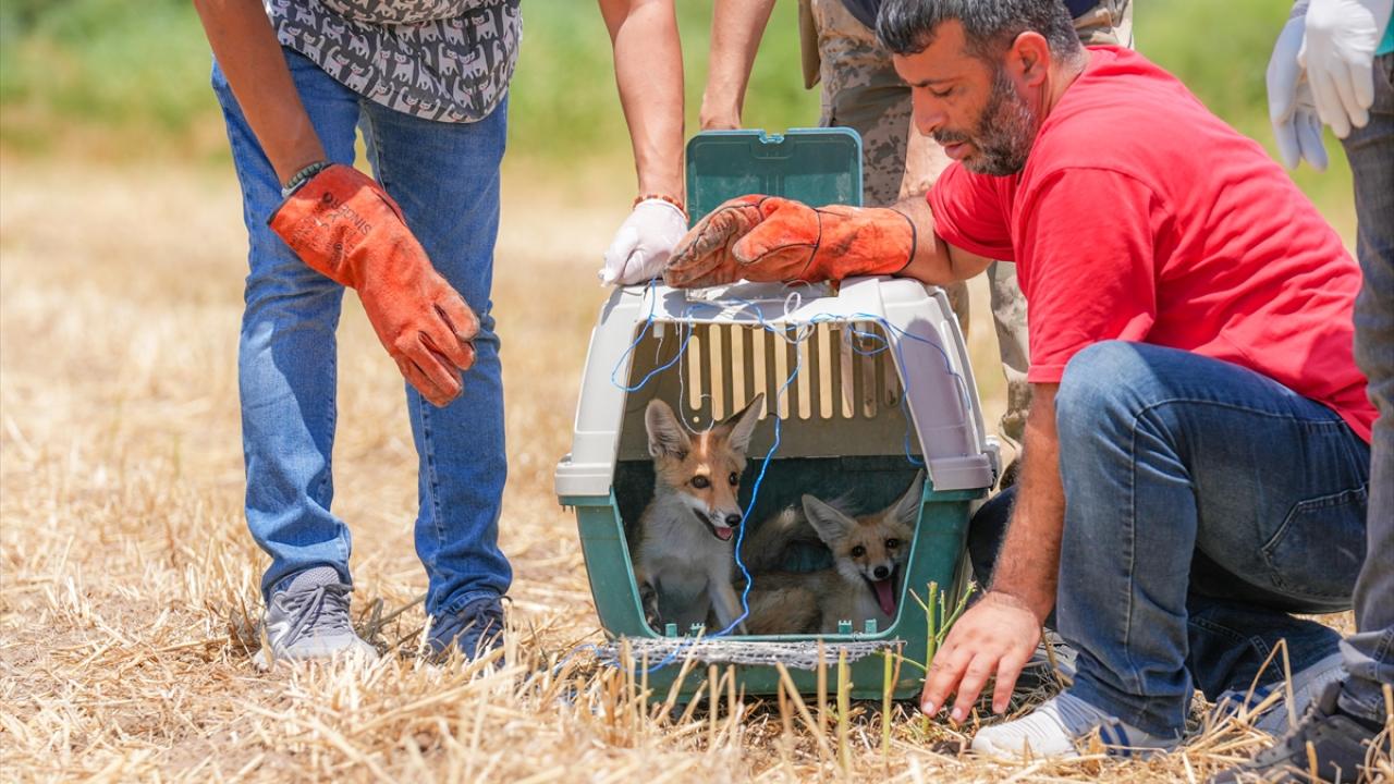 Diyarbakır'da Dicle Yaban Hayvanı Kurtarma ve Rehabilitasyon Merkezinde iki aylık özel bakımla hayata tutunan öksüz kızıl tilki yavruları "Dicle" ve "Fırat" doğayla buluştu.
