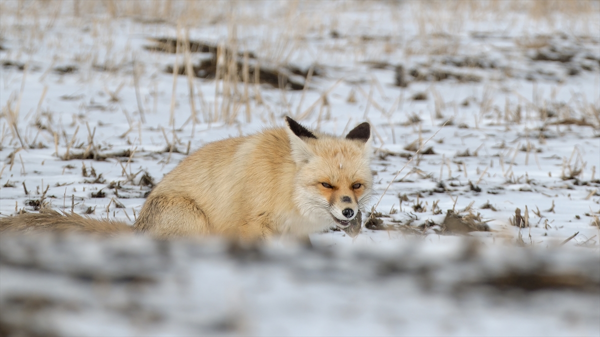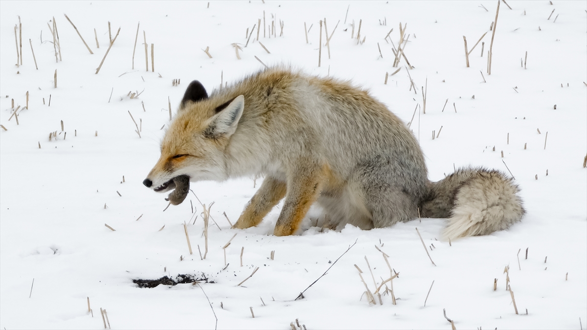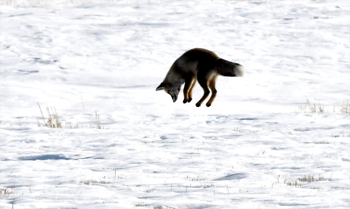 Kış mevsiminin sert geçtiği, ilkbaharda da yoğun kar yağışının yaşandığı Kars'ta kızıl tilkiler, kar altındaki canlıları hassas kulaklarıyla yer tespiti yaparak avlıyor.