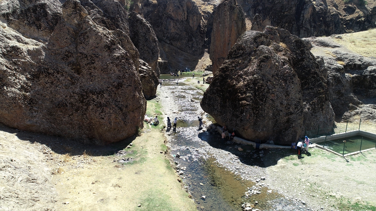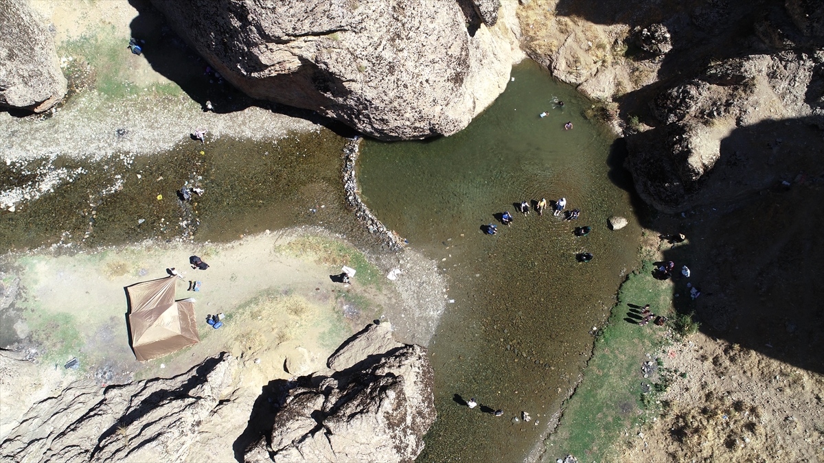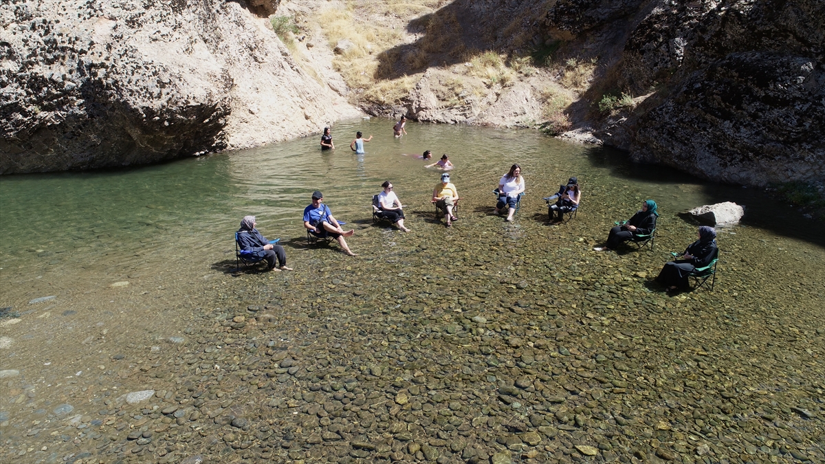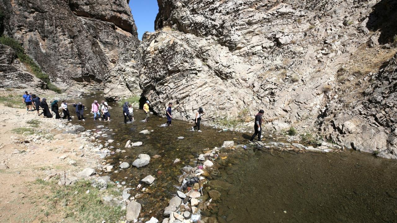 Sarp kayalıklarla çevrili kanyona gelen doğaseverler, yürüyüş yaparak hem doğayla iç içe zaman geçirdi hem de berrak suya girerek serinleme fırsatı buldu.
