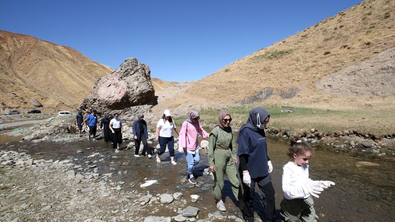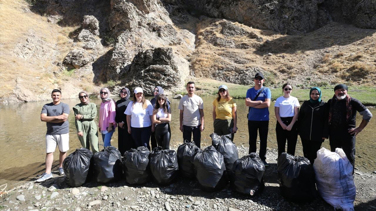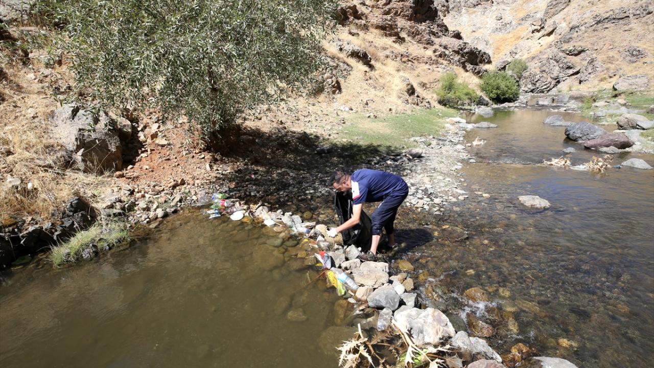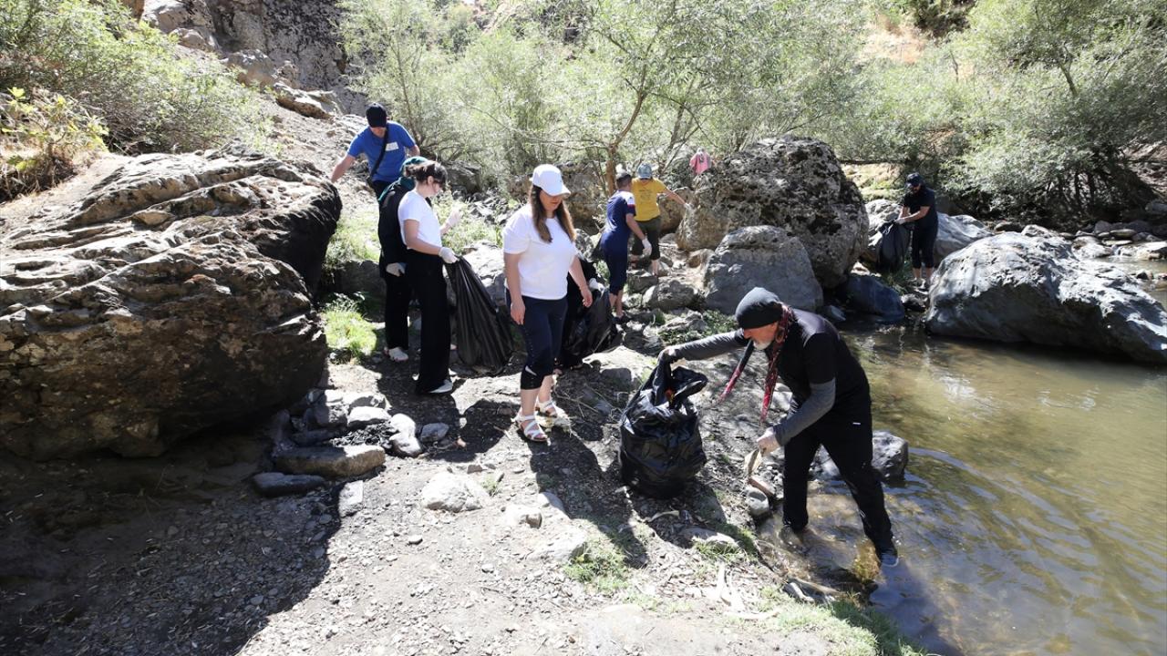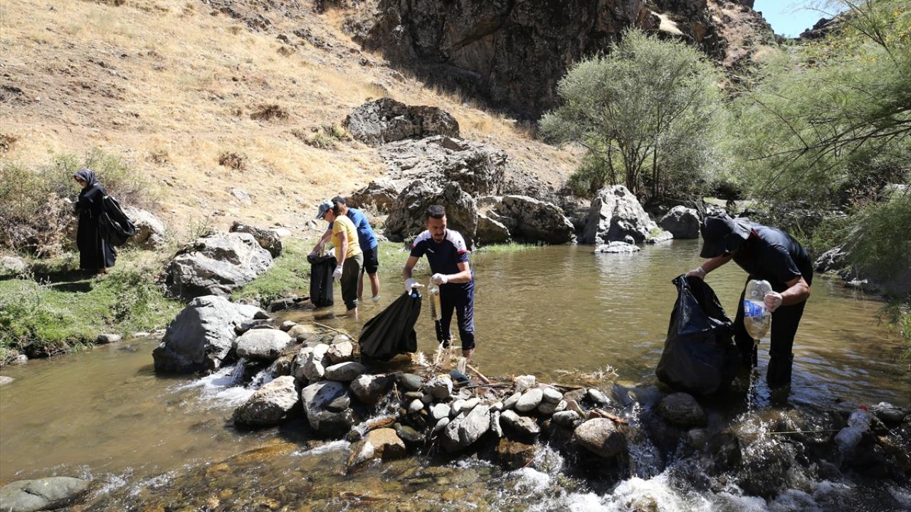 Muş'ta doğal güzellikleri ve serin suyuyla öne çıkan Kızılağaç Kanyonu'nu ziyaret eden bir grup doğasever, yürüyüşün yanı sıra farkındalık oluşturmak için çöp de topladı.