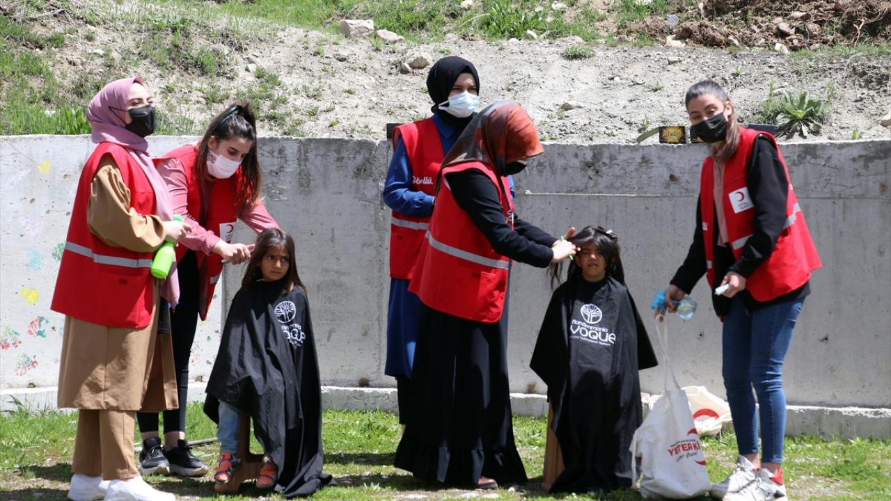 Bu kapsamda harekete geçen Türk Kızılay Kadın Ağrı Temsilcisi Neslihan Taşdemir ve aralarında kadın kuaförlerin de bulunduğu gönüllüler, köyleri ziyaret ederek çocuklarla bir araya geldi.