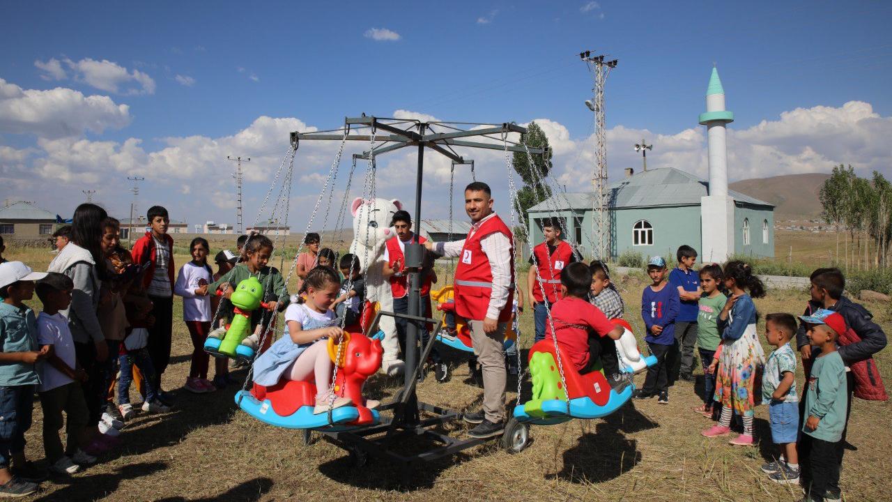 Türk Kızılay Muradiye Şubesi gönüllüleri, ilçe merkezine 25 kilometre uzaklıktaki Yukarı Argıt Mahallesi`ne götürdükleri atlı karıncayla çocuklara eğlenceli anlar yaşattı.
