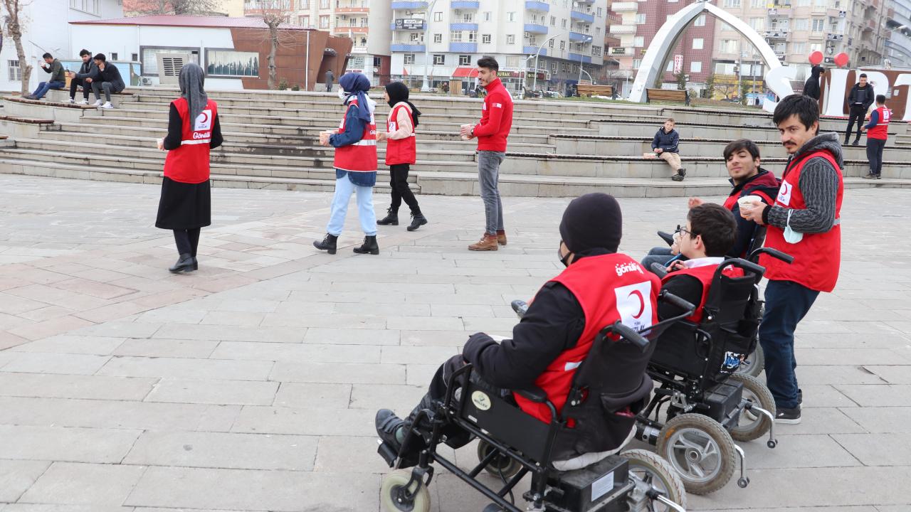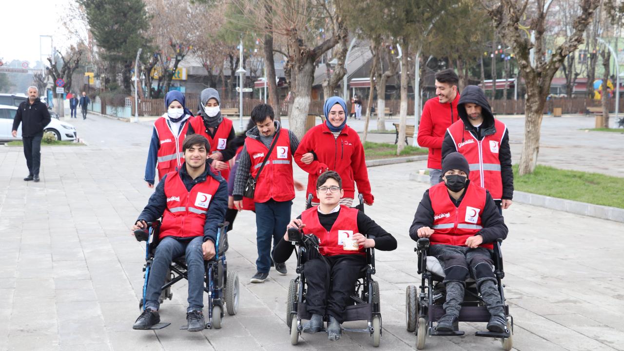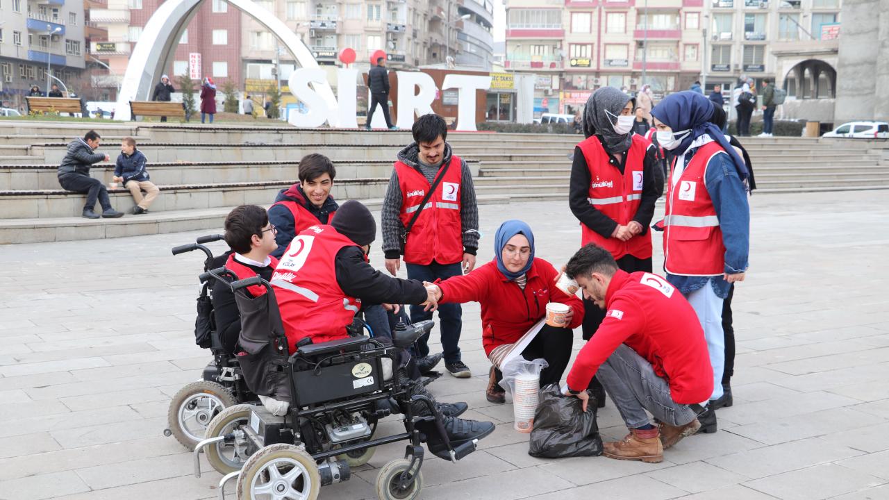 Siirt'te Türk Kızılay'ın "Engelsiz Kulüp" projesi kapsamında bir araya gelen engelliler, sosyal yardım ve destek faaliyetlerinde yer alarak çalışmalara destek oluyor.