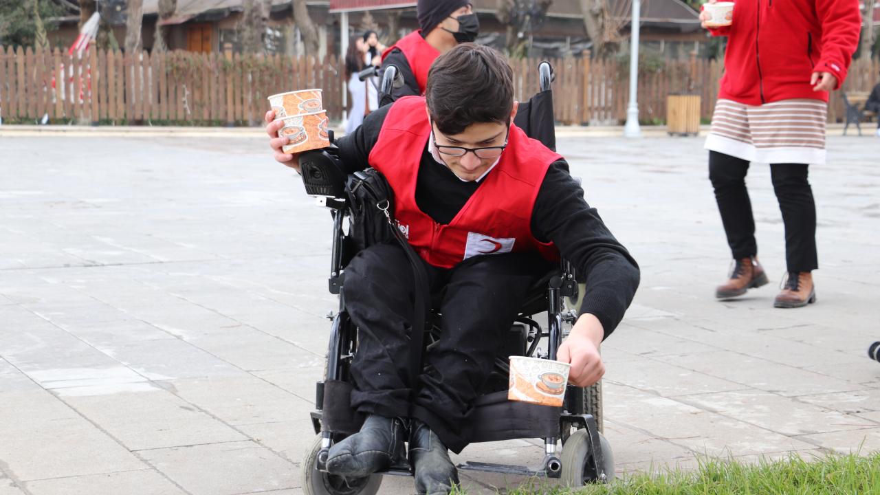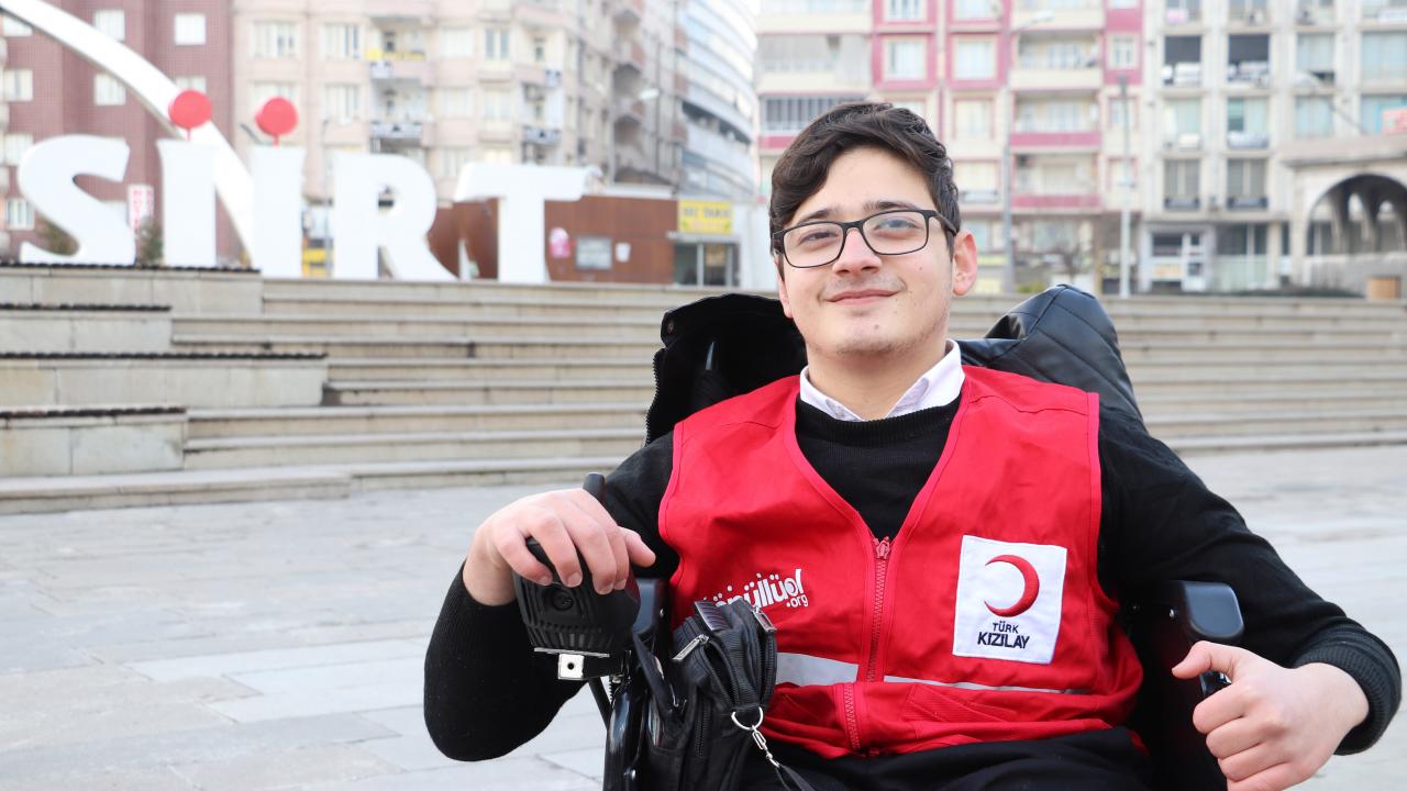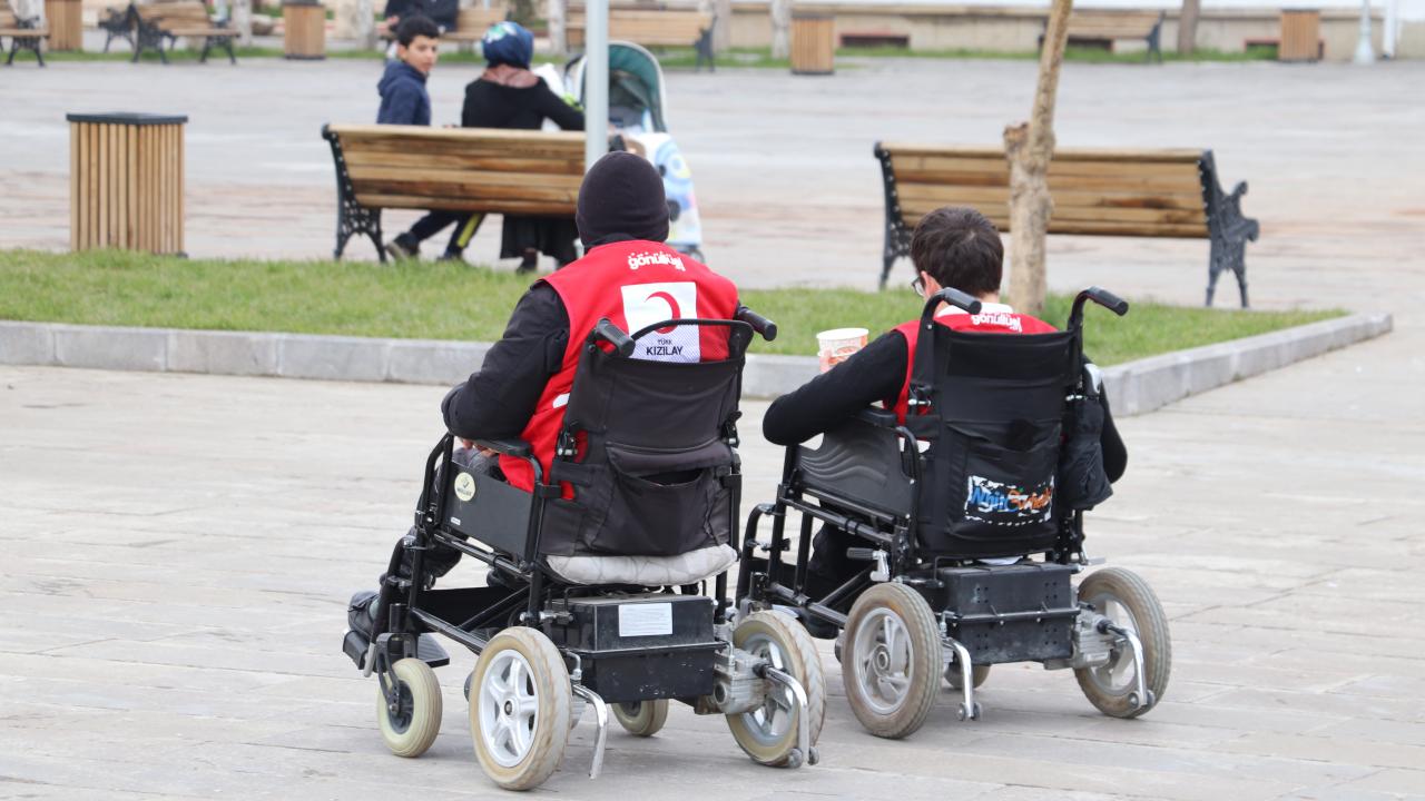 Ortaokula giderken babasının sırtında okula gittiğini anlatan Özdeniz, "Kızılay`ın aldığı akülü araç ilk akülü aracım olmuştu ve çok mutlu olmuştum. Şimdi de kırmızı yelek giyen gönüllüler arasına katılmanın sevincini yaşıyorum" dedi.
