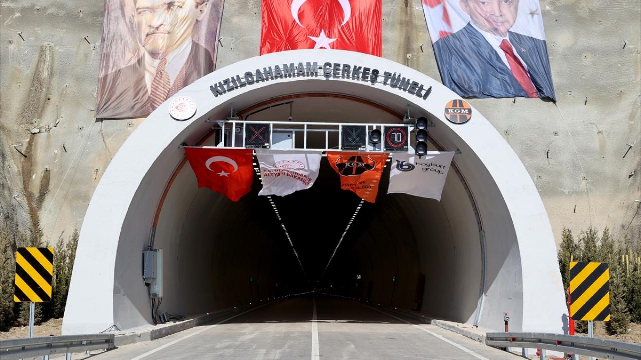 "Kızılcahamam`ı, Çankırı`nın Çerkeş ilçesine ve D-100 Devlet Yolu`na bağlayan tünelimizle 6 kilometrelik mevcut güzergah, 2 bin 71 metre olarak inşa ettiğimiz tünelimizin hizmete girmesiyle 2,4 kilometre kısalarak 3,6 kilometreye inmiştir."