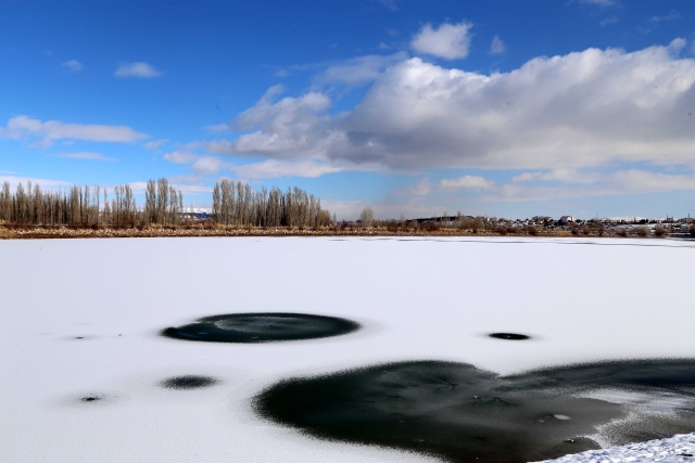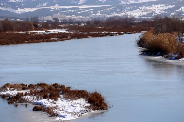 Sivas'ta soğuk hava nedeniyle Türkiye'nin en uzun nehri Kızılırmak'ın bazı bölümleri buzla kaplandı. Karşıyaka Mahallesi'nde bulunan Serpincik Göleti de soğuk hava nedeniyle buz tuttu.