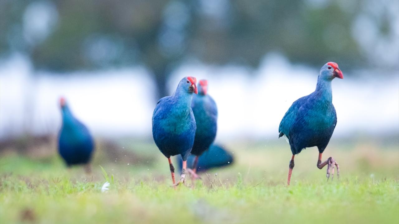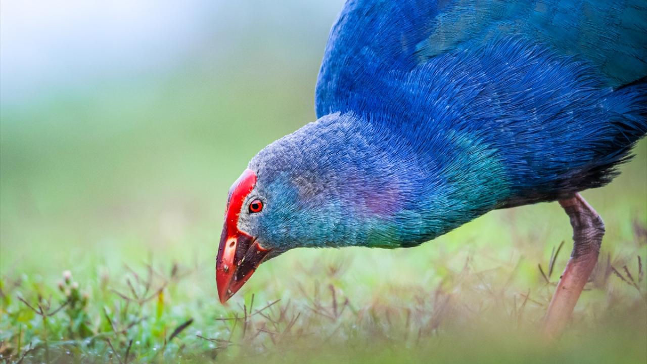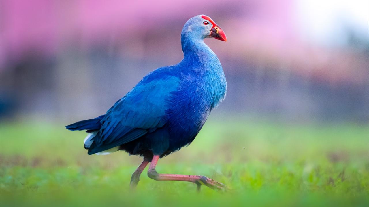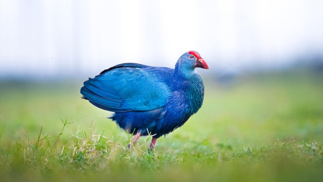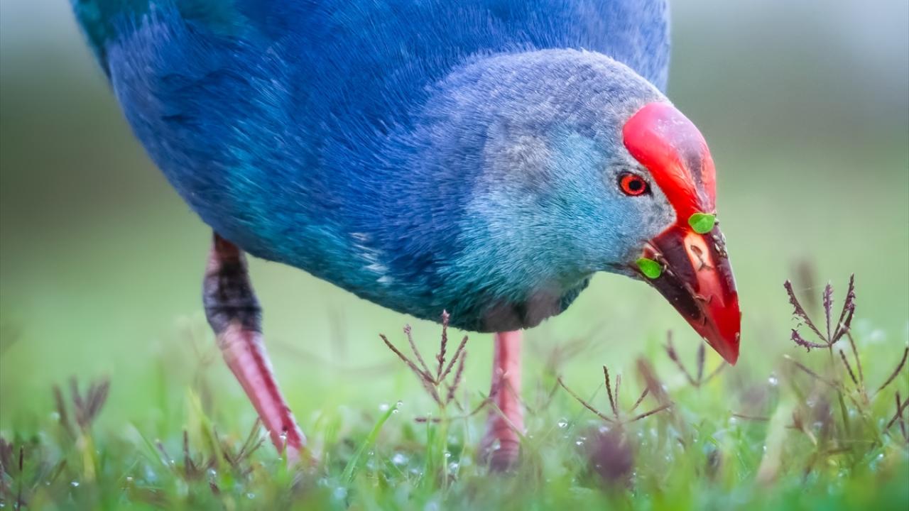 Delta içerisinde yer alan ve mavi tonlarındaki renkleri ile dikkat çeken saz horozları, günün ilk saatlerinde sazlıklardan çıkarak çayırlarda yemleniyor.