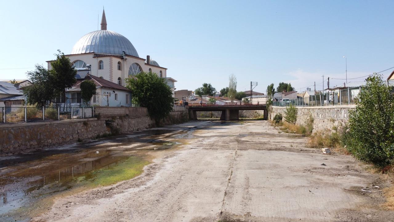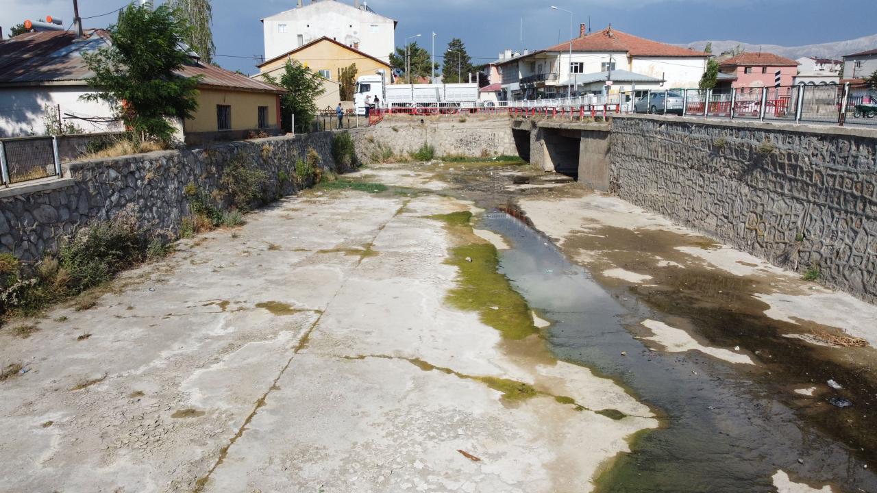 Yakın zamana kadar temiz ve gür akan ırmağın ilçe içinden geçen yatak kısmı, boş kaldı. Susuz ırmak yatağı, dronla havadan da görüntülendi.