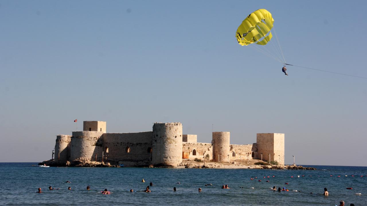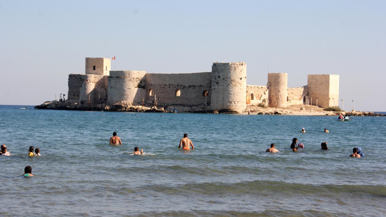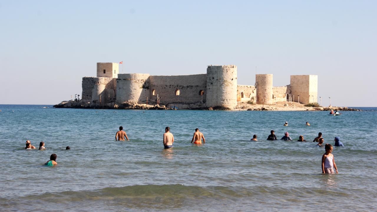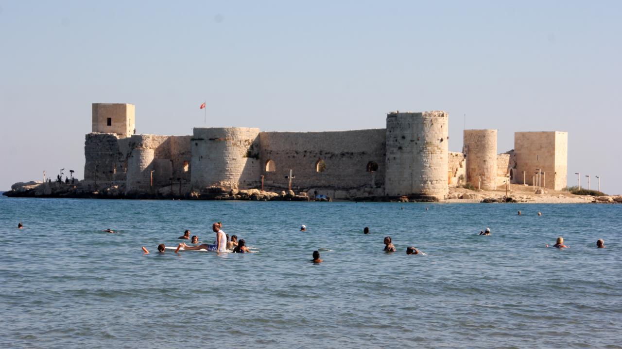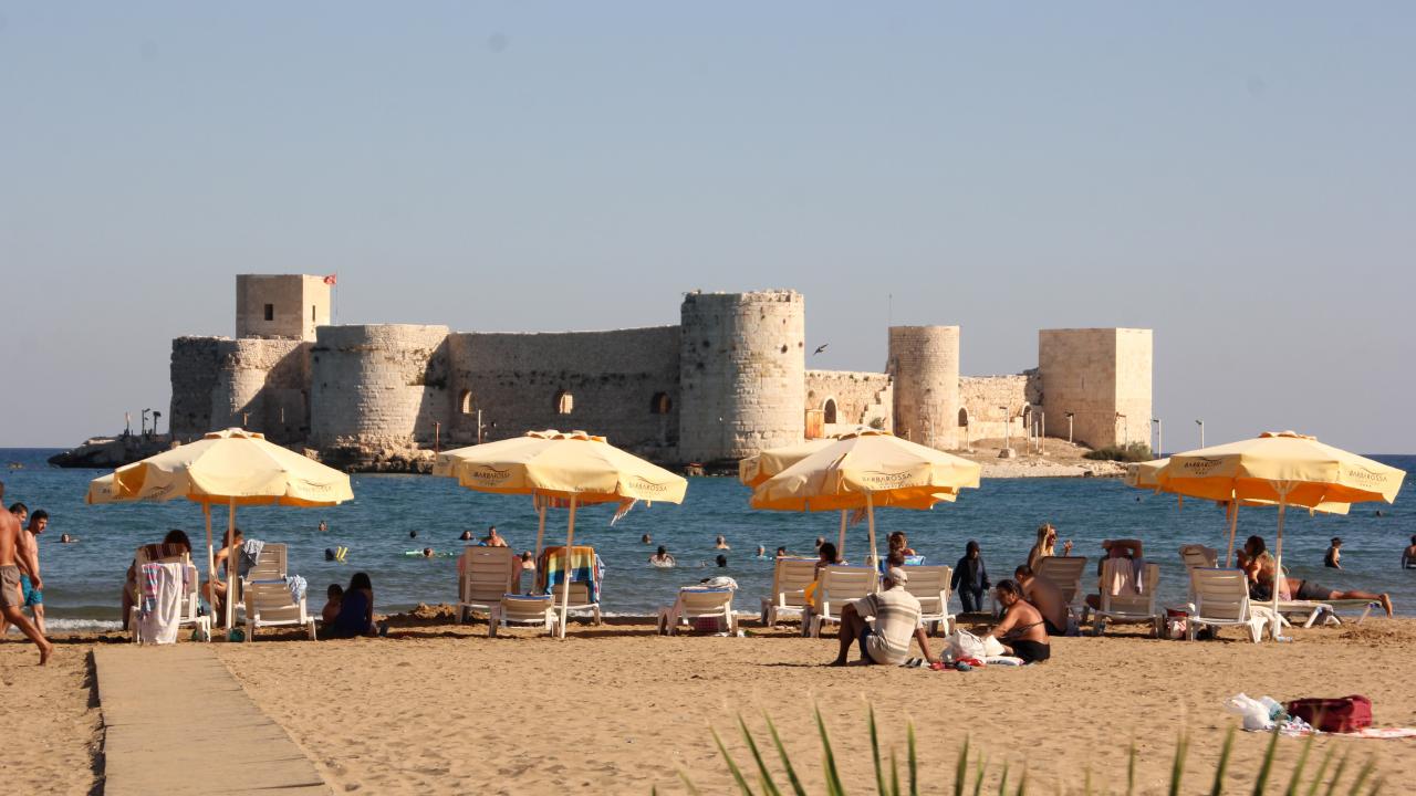 Mersin'in önemli turizm merkezlerinden Kızkalesi'nde, ekim ayı da hareketli geçiyor. Yerli ve yabancı turistler, güneşli havada deniz ve kumun tadını çıkardı.