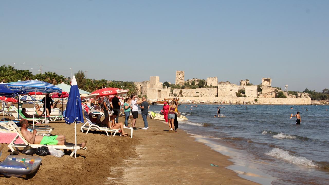 Çalışkan, tesis yoğunluğu ve turistlerin ilgisinden memnun olduklarını aktararak, "Altın sarısı kuma sahip Kızkalesi sahili, yazdan kalma günler yaşıyor. Hava sıcaklığı 33 derece, deniz suyu sıcaklığı ise 26-27 dereceye ulaşıyor." ifadelerini kullandı.
