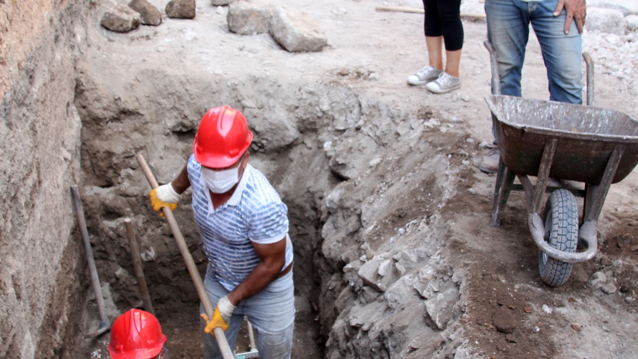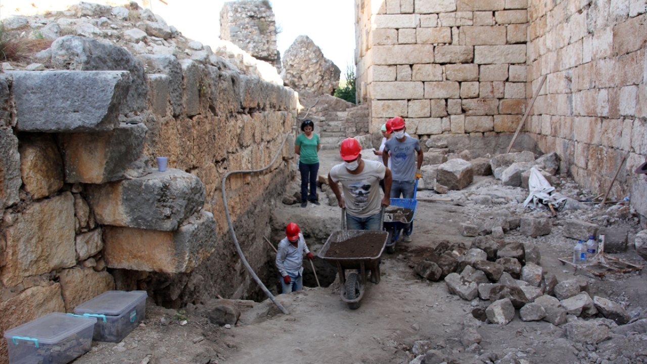 Mersin Müze Müdürlüğü öncülüğünde kalenin zemininde gerçekleştirilen çalışmalar, 2 arkeolog tarafından yürütülüyor.