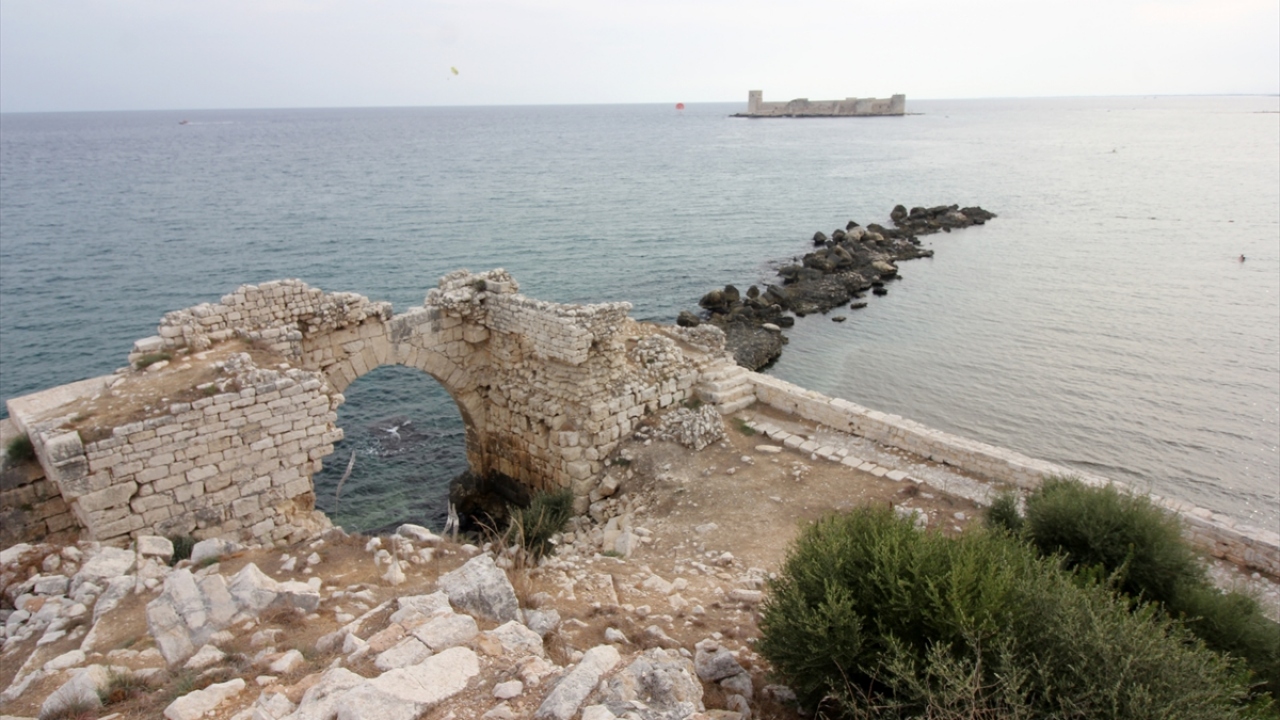 UNESCO Dünya Miras Geçici Listesinde yer alan Mersin’in Erdemli ilçesindeki Kızkalesi'nin karada bulunan bölümünde başlatılan kazı çalışmalarında zemin ve yüzey araştırması yapılıyor.