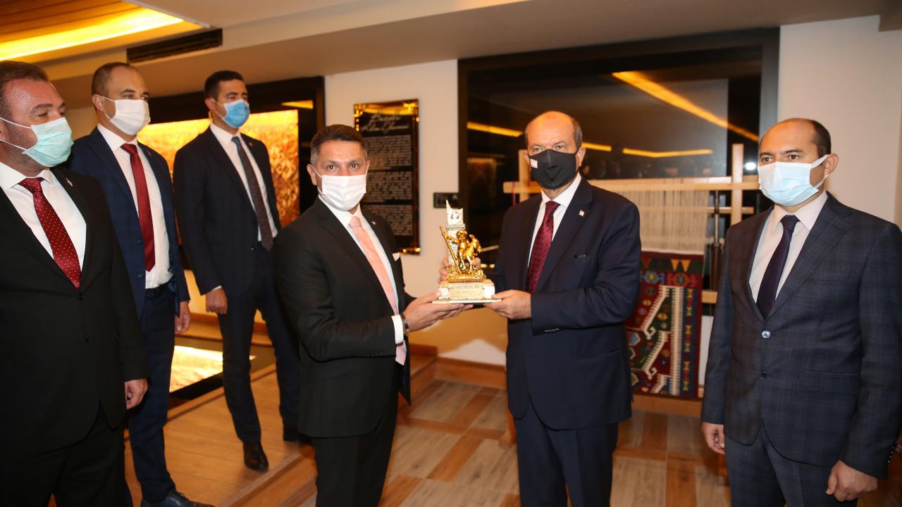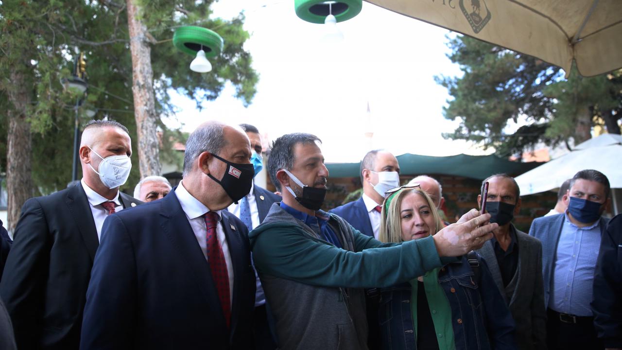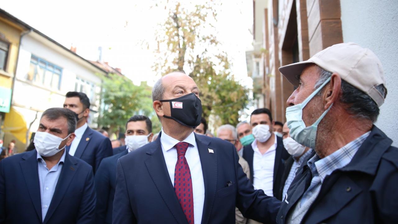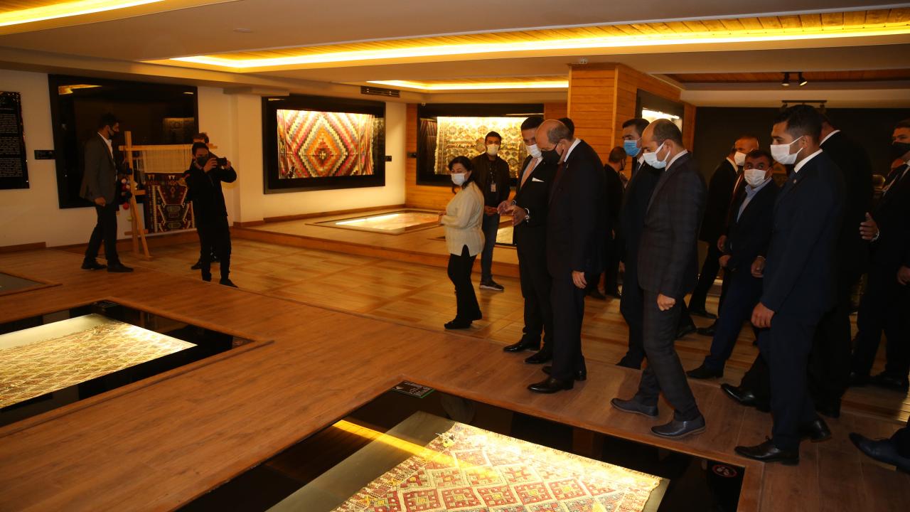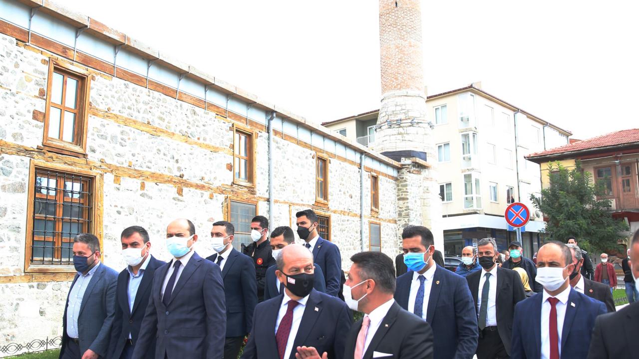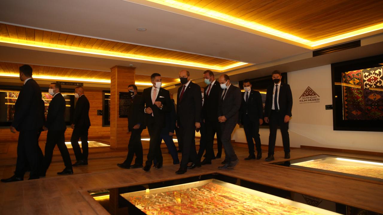 Kuzey Kıbrıs Türk Cumhuriyeti (KKTC) Cumhurbaşkanı Ersin Tatar, Eskişehir'in Sivrihisar ilçesindeki temasları kapsamında Kilim Müzesi ve Ulu Cami'de incelemelerde bulundu, vatandaşlarla sohbet etti.