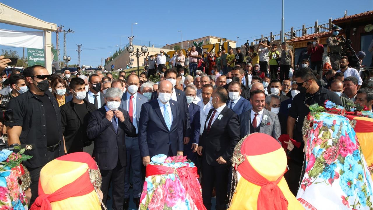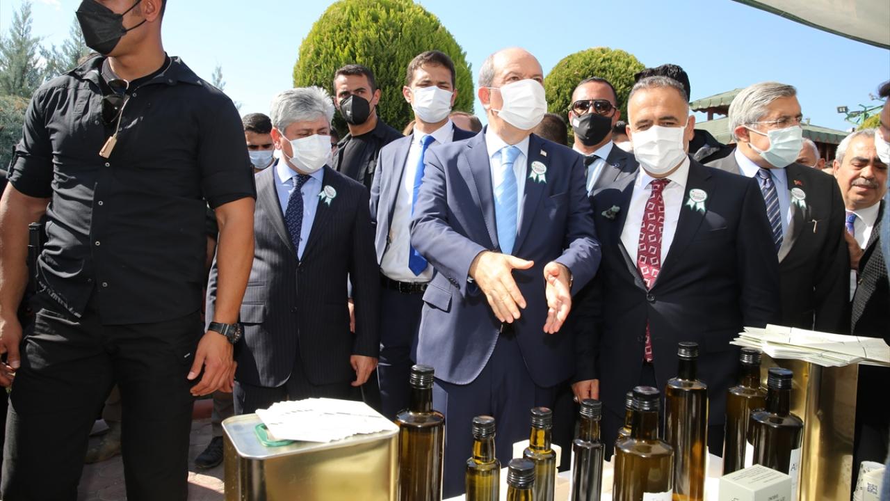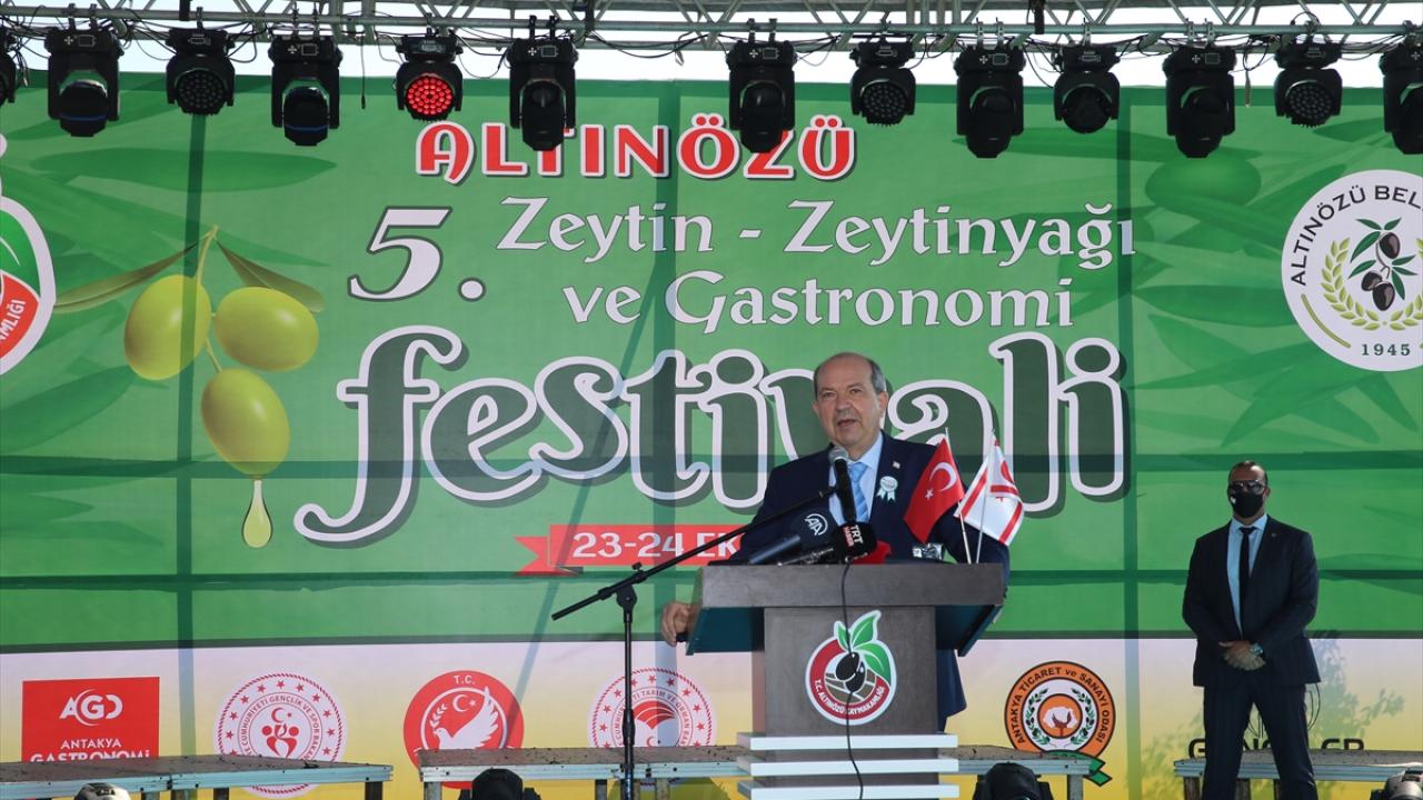 Kuzey Kıbrıs Türk Cumhuriyeti Cumhurbaşkanı Ersin Tatar, 15 Temmuz Milli İrade Parkı'nda düzenlenen Altınözü 5. Zeytin, Zeytinyağı ve Gastronomi Festivali'ne katıldı.