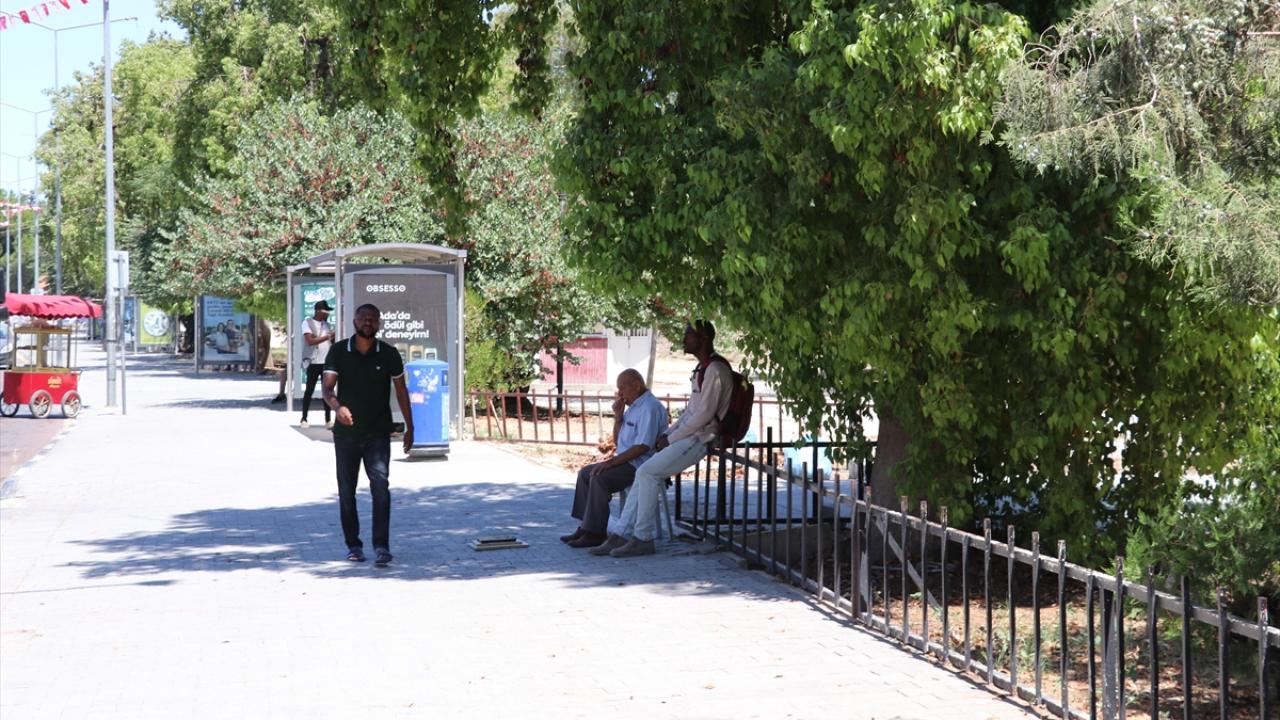 Aşırı sıcak nedeniyle caddeler tenhalaşırken dışarıda olanlar da gölgelik alanları tercih etti.