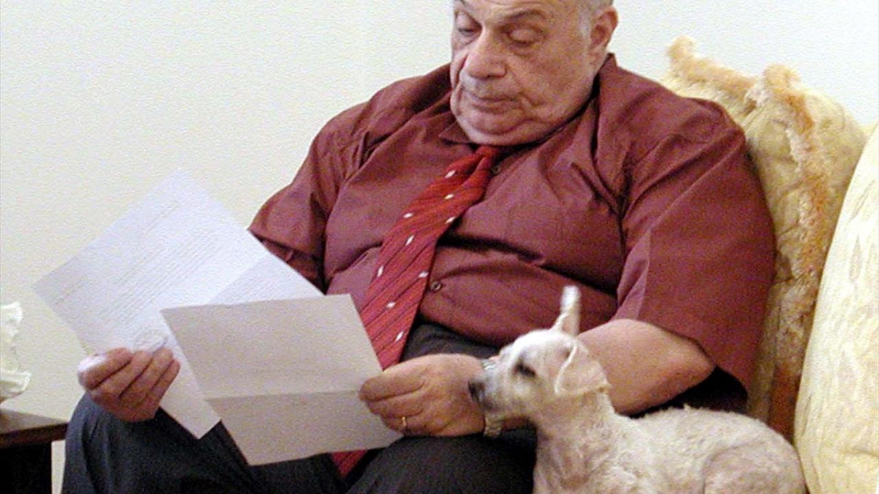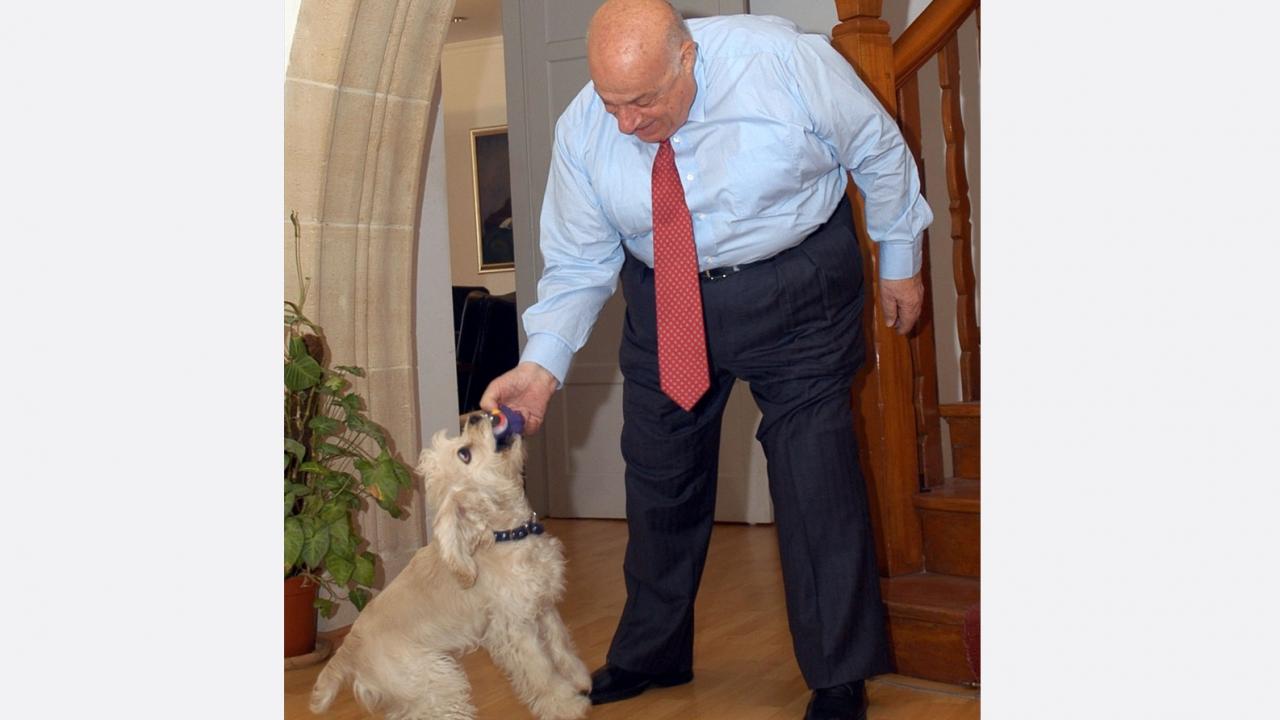 9 Nisan 2005`de KKTC`nin 1. Cumhurbaşkanı Denktaş, köpeği boncuk ile oyun oynamıştı. (Arşiv)