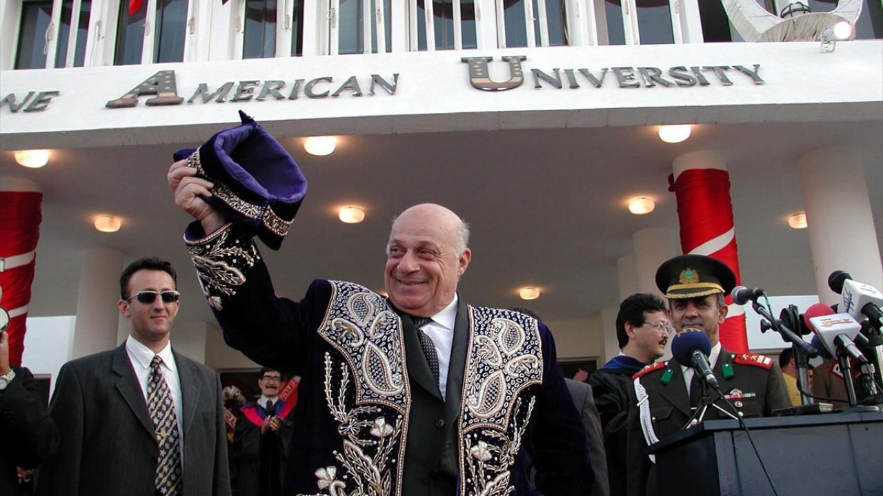 27 Eylül 1999`da KKTC`nin 1. Cumhurbaşkanı Denktaş`a, Adnan Menderes Üniversitesi Senatosunca Fahri Bilim Doktorası verilerek cübbe giydirilmişti. (Arşiv)