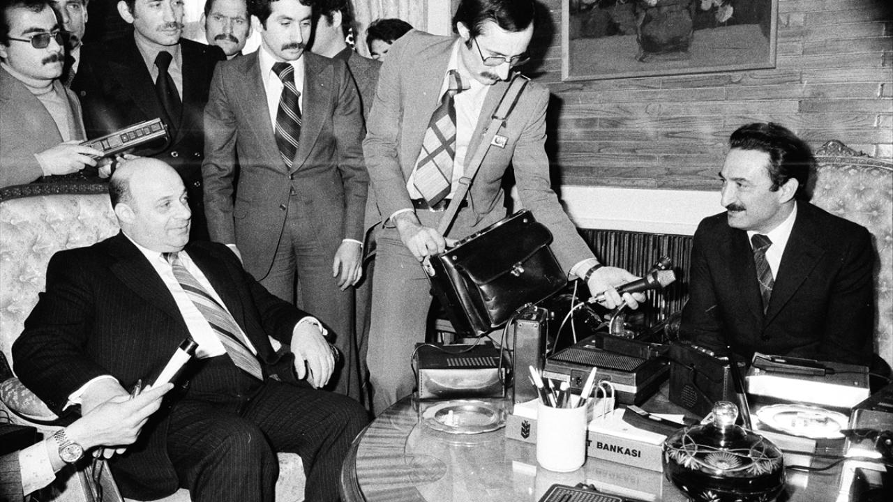 Dönemin Başbakanı Ecevit (sağda), 6 Mart 1978`de Kıbrıs Türk Federe Devleti Başkanı (KTFD) Denktaş (solda) ile görüşmüştü. (Arşiv)