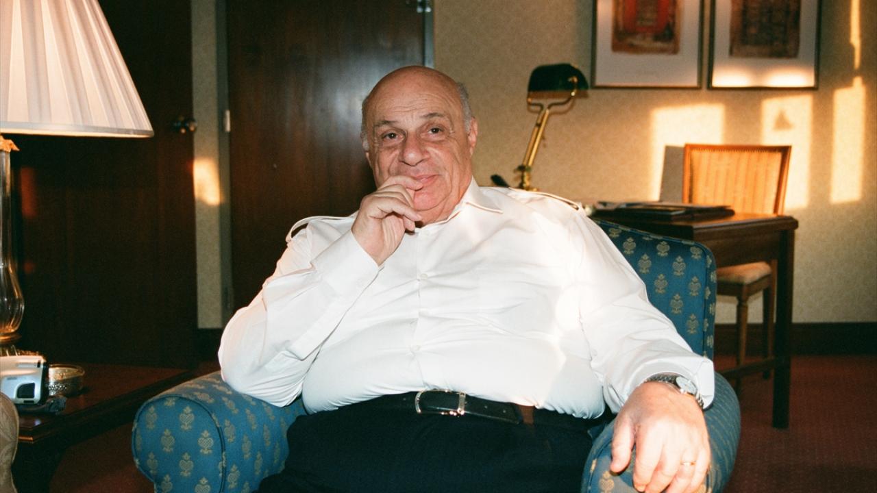 Denktaş, 11 Mayıs 1999`da İzmir`de kaldığı otelin balkonunda. (Arşiv)