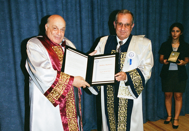 Denktaş`a (solda) 27 Eylül 1999`da Adnan Menderes Üniversitesi tarafından fahri doktora unvanı verilmişti. Rektör Prof. Dr. Cezmi Öncüer (sağda). (Arşiv)