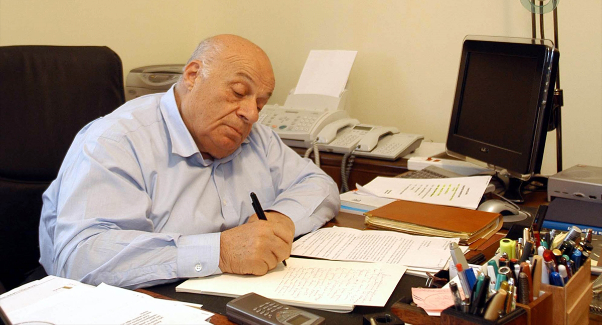 Denktaş, 10 Mayıs 2005`te Lefkoşa`daki yeni ofisinde çalışırken. (Arşiv)
