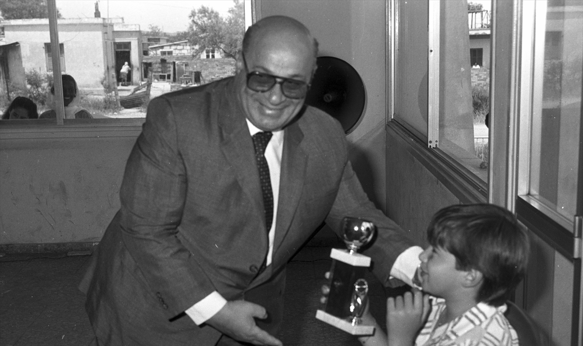 Denktaş, 27 Mayıs 1987`de spor şöleninde ödül kazanan sporculara kupalarını vermişti. (Arşiv)