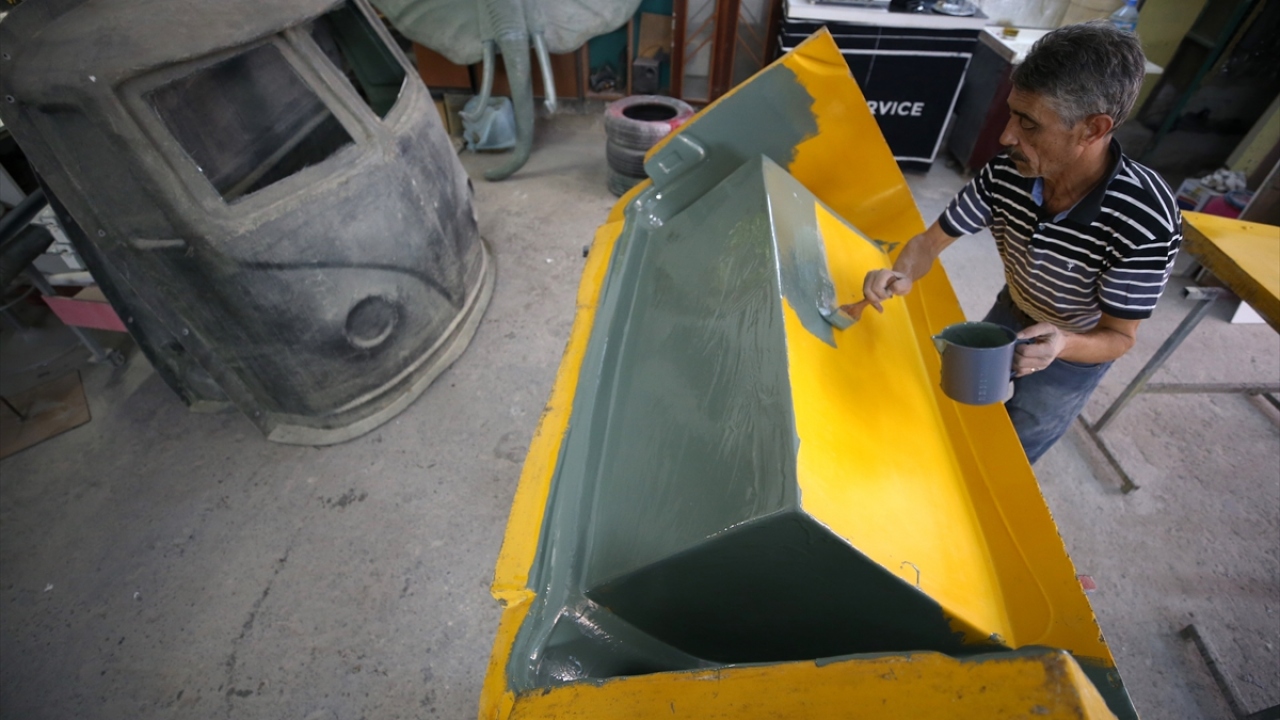 "Araçlardan sadece koltuk üretmek istemedik, çalışma masası, aksesuar ve tabela gibi farklı ürünler de yapıyoruz. Ağırlıklı olarak kafe ve restoran işletmecileri talep gösteriyor ancak evlere yönelik de çalışmalarımız var. Bazen hurdalarından, bazen de yürür durumdaki klasik araçlardan birebir kalıplar alıyoruz. Kalıbını çıkardıktan sonra işlemlere geçiyoruz. En zorlu süreç burada başlıyor. Kalıpları çıkardıktan sonra üzerindeki parçaları samanlıkta iğne arar gibi tek tek arayıp buluyoruz. Çok gerçekçi bir görünüme kavuşuyor."