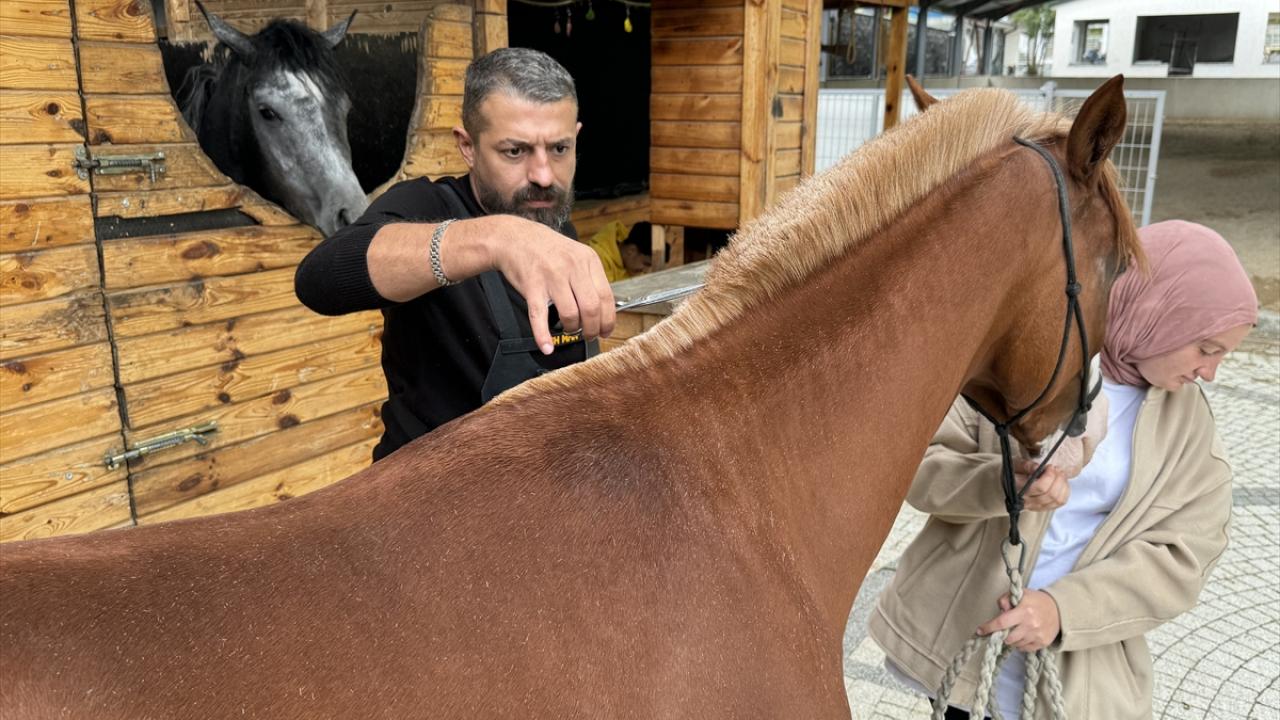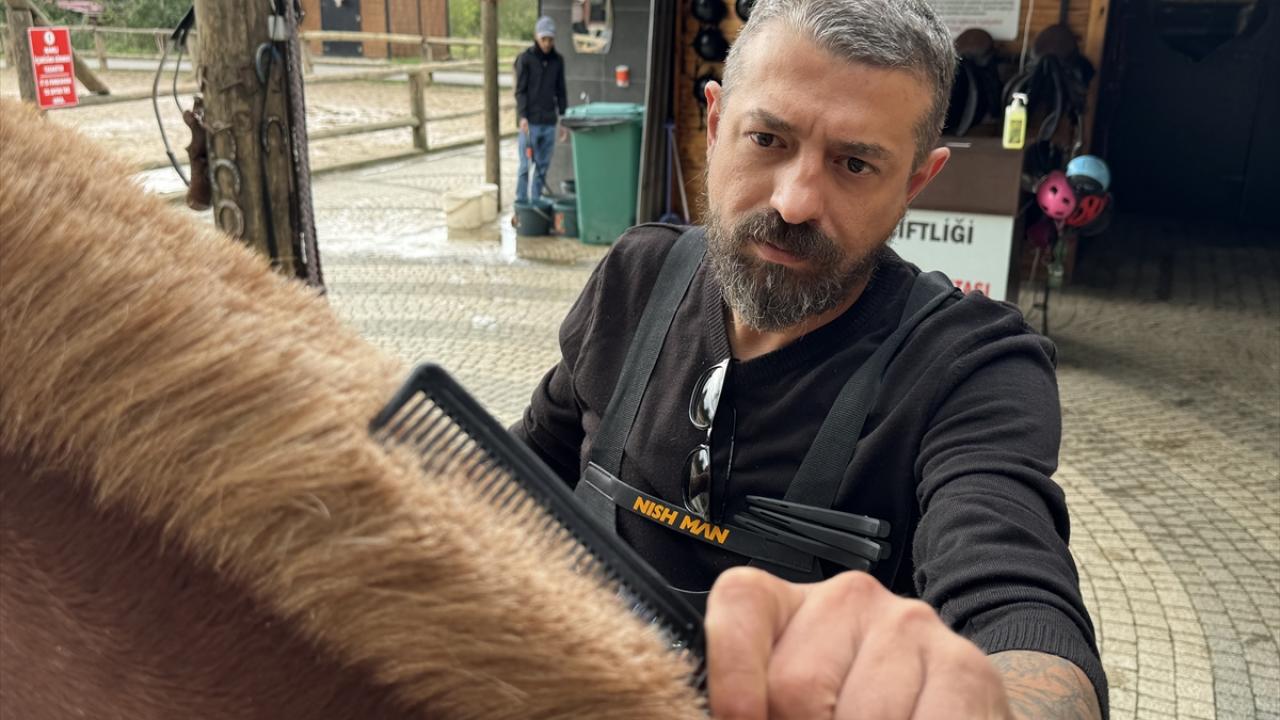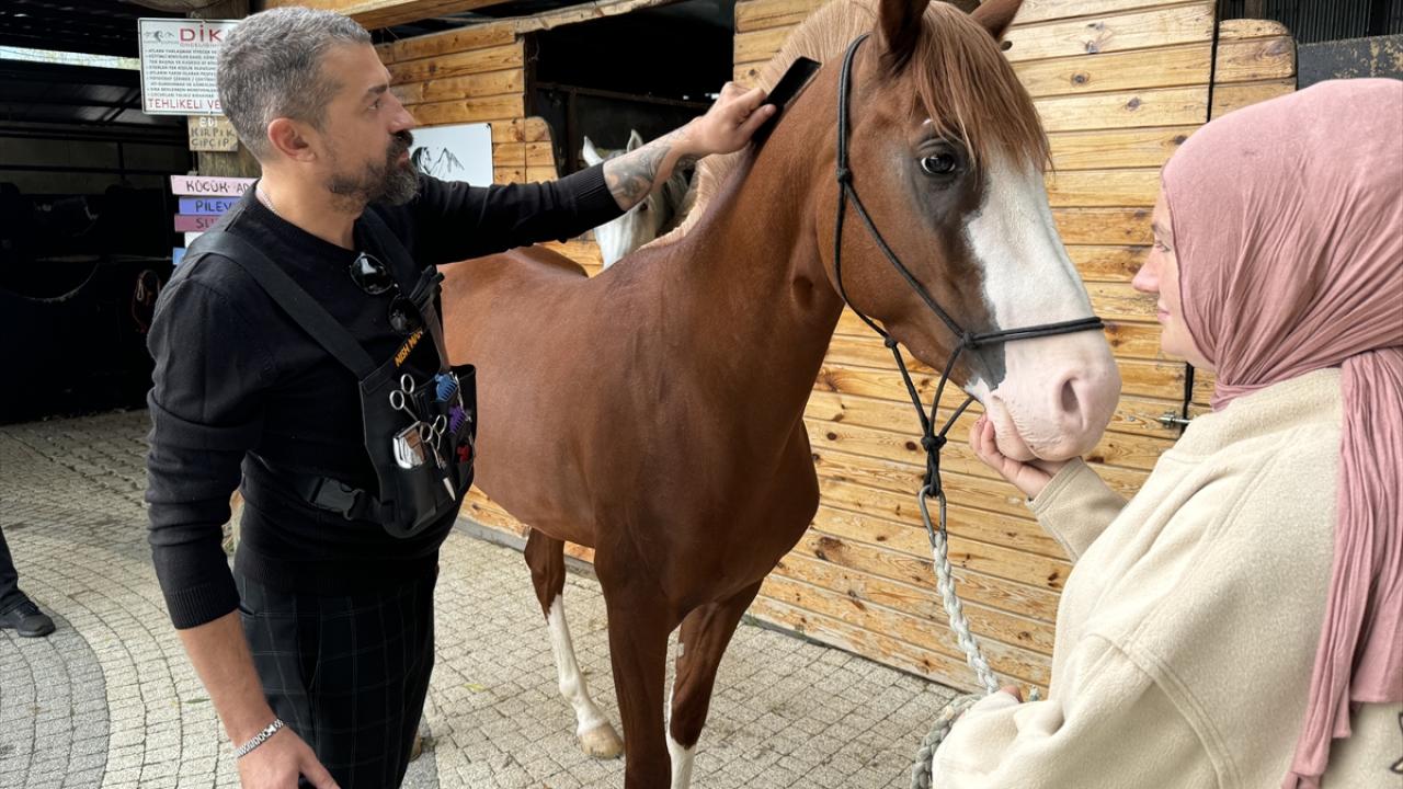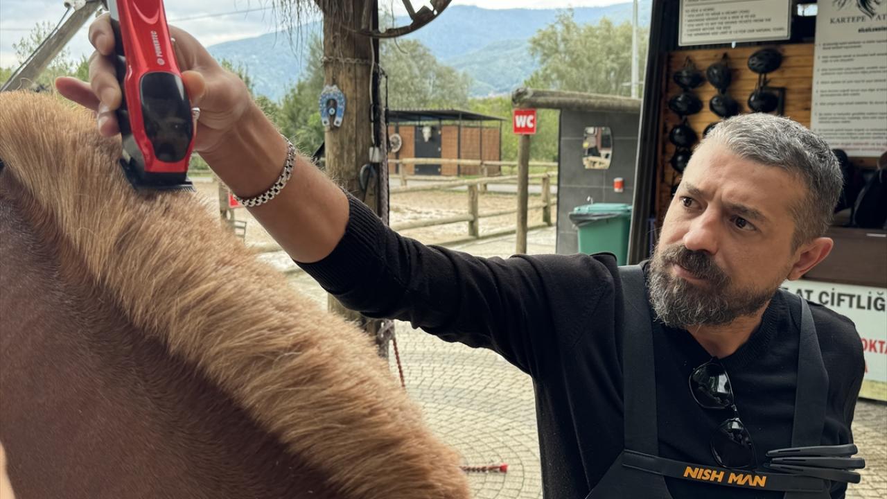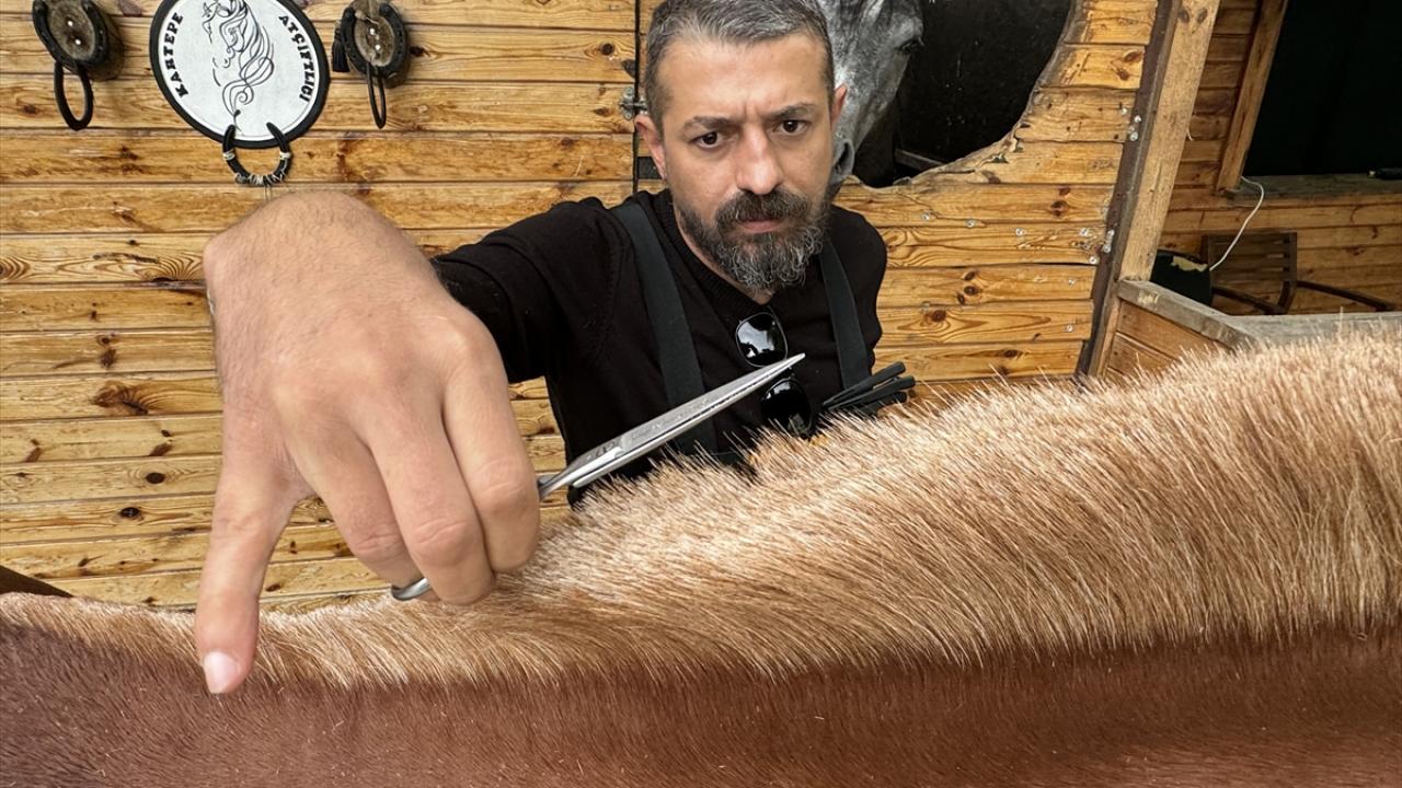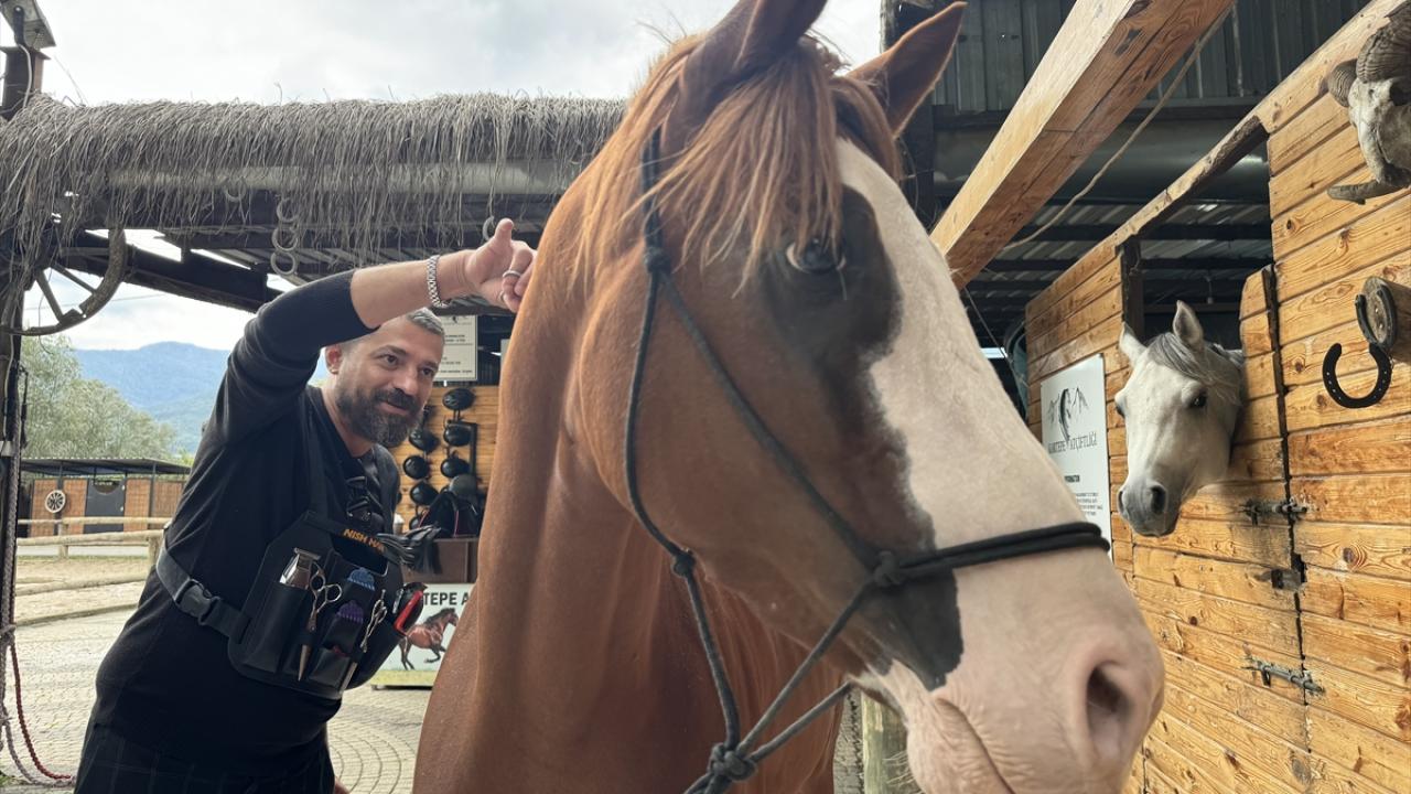 İlçede baba mesleği kuaförlüğü sürdüren 42 yaşındaki Ethem Yıldız, 4 yıldır özel ekipmanlarla ve seyislerin de yardımıyla atların yelelerini kesiyor, bakımlarını yapıyor.