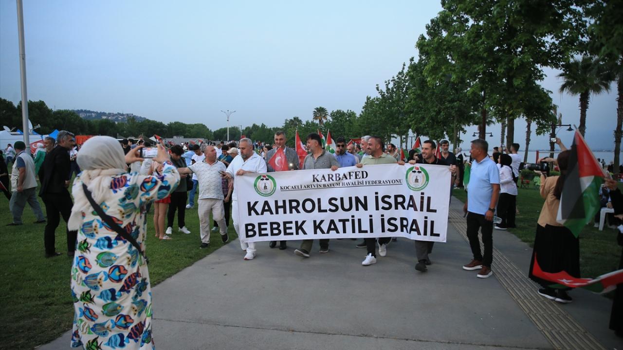 Kocaeli Gönüllü Kültür Teşekkülleri çatısı altında 200`ü aşkın sivil toplum kuruluşu tarafından Filistin`e destek amacıyla yürüyüş ile bisiklet ve deniz konvoyu etkinliği yapıldı.