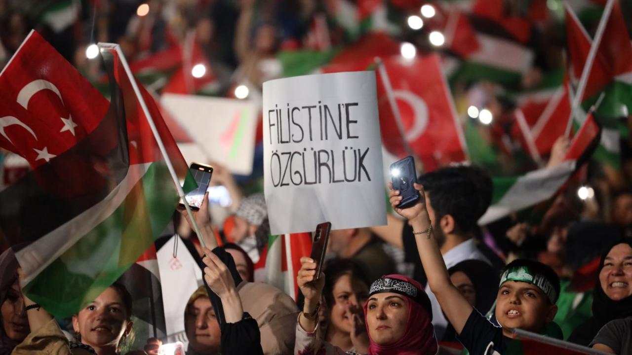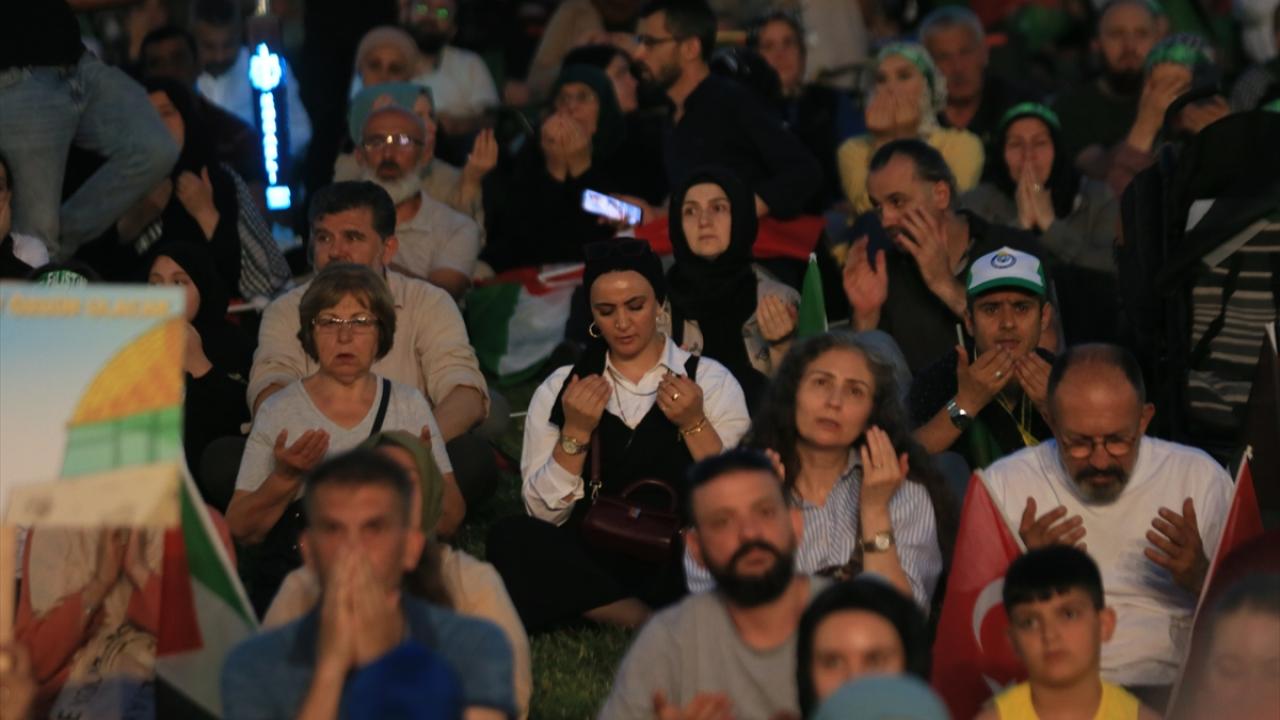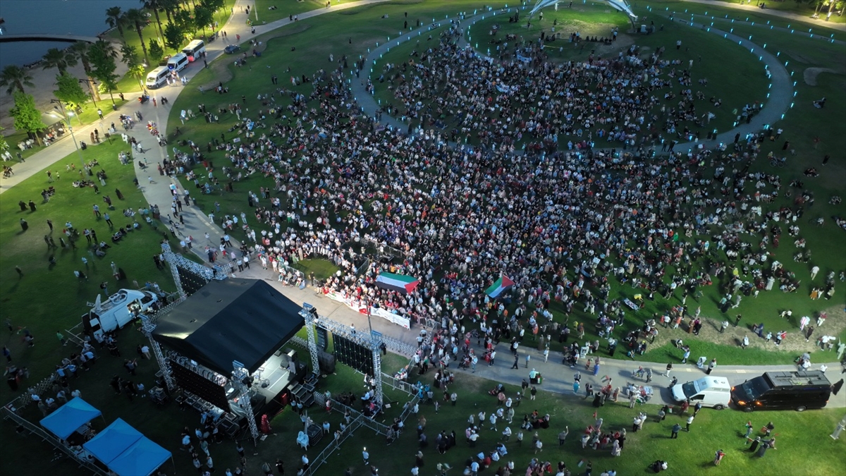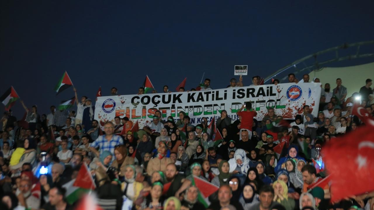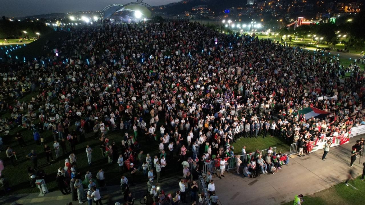 Konuşmaların ardından Filistinliler için edilen duayla devam eden eylem, Murat Kekilli`nin seslendirdiği Filistin marşlarının ardından sona erdi.