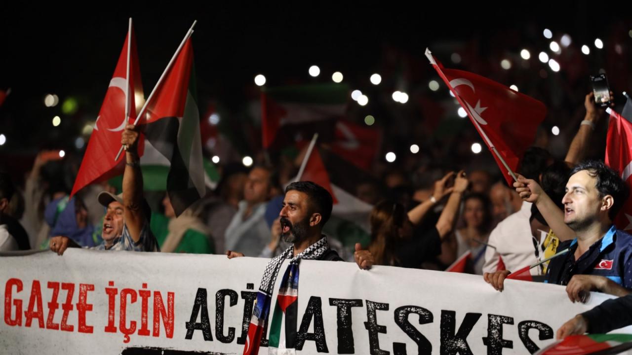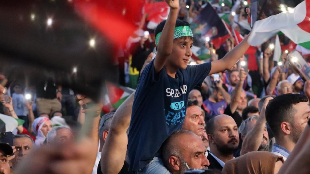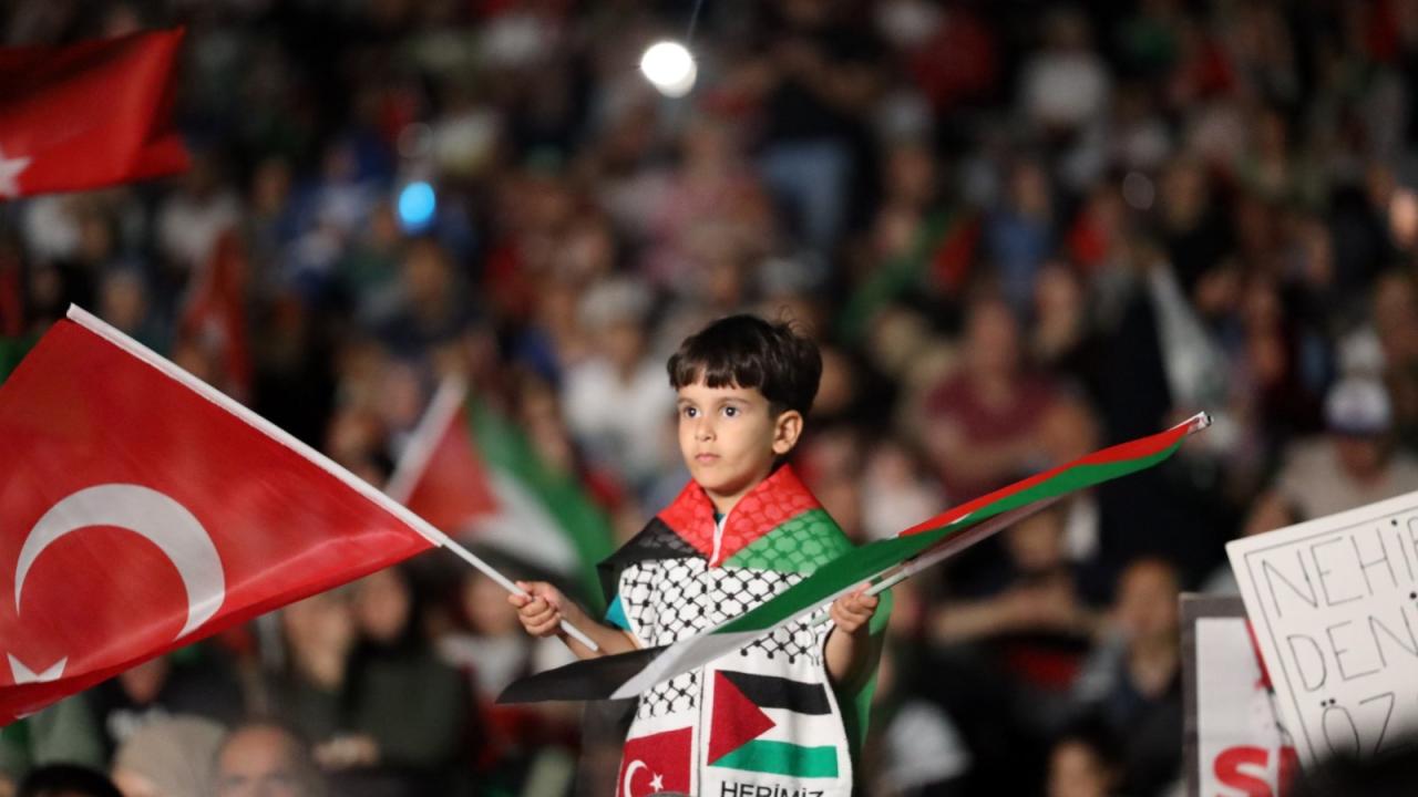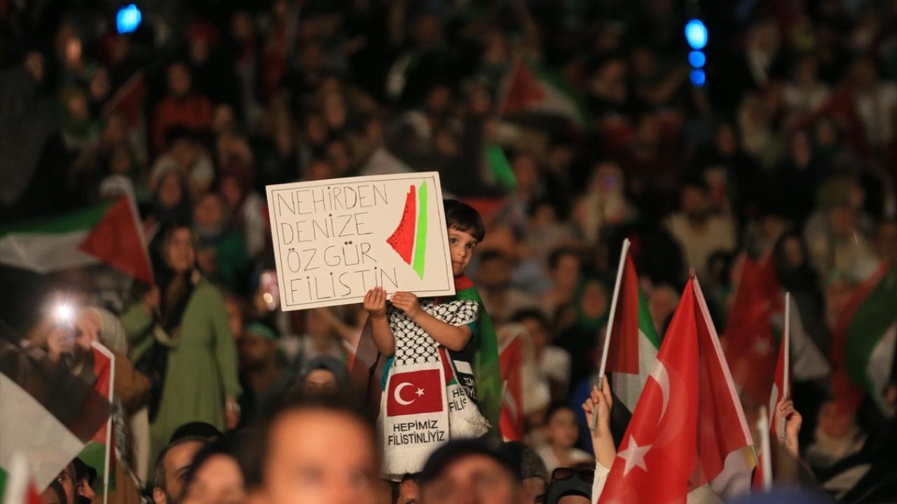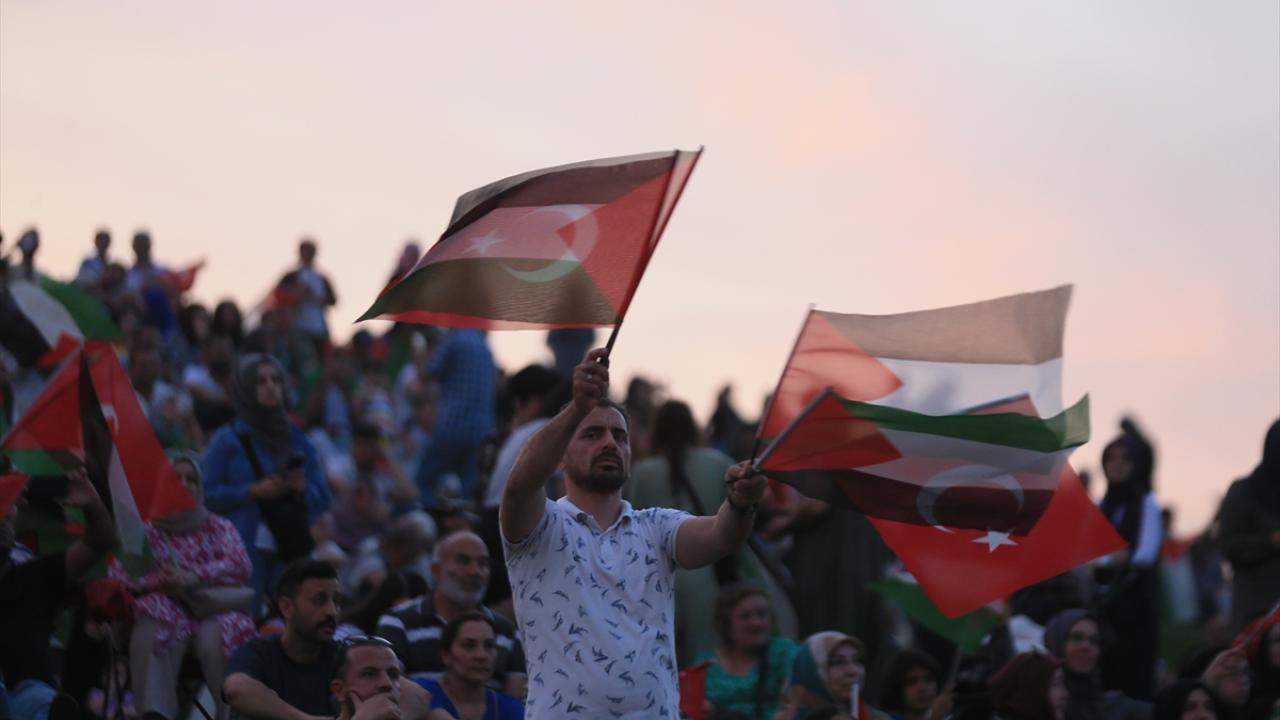 Konuşmaların ardından Filistinliler için edilen duayla devam eden eylem, Murat Kekilli`nin seslendirdiği Filistin marşlarının ardından sona erdi.