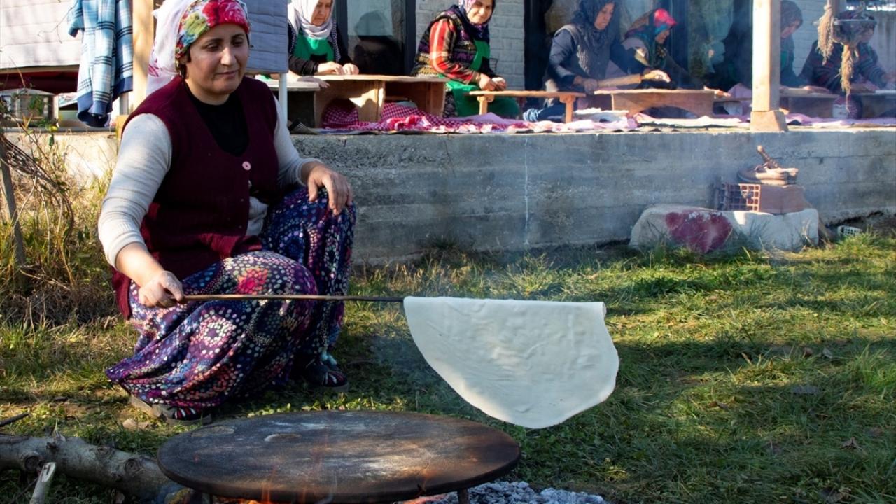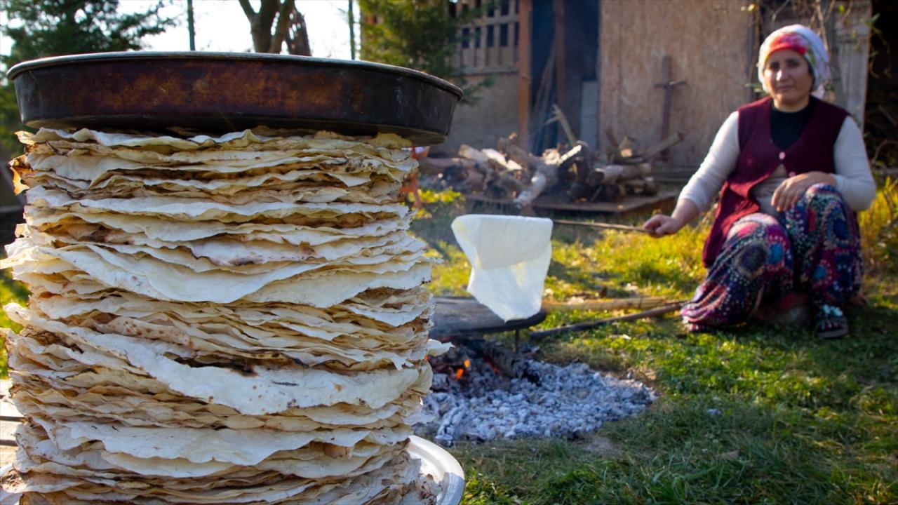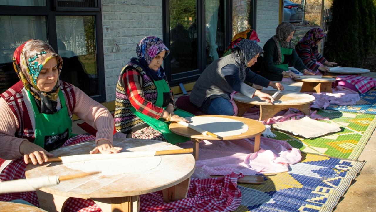 Aylar öncesinden kazların besiye çekilmesiyle başlayan hazırlıklar, havaların soğumasının ardından kadınlar tarafından imece usulü kuru yufka açılmasıyla devam ediyor.
