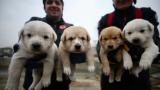 Dere yatağında mahsur kalan köpek ve yavruları kurtarıldı