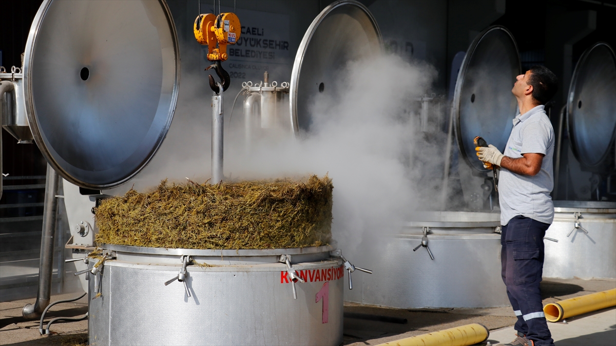 Sabah saatlerinde tarlaya giren işçiler tarafından hasat edilen biberiye, İzmit`teki distilasyon (damıtma) tesisine gönderiliyor. Burada, damıtma tanklarına alınan bitkilerden uçucu yağ elde ediliyor.