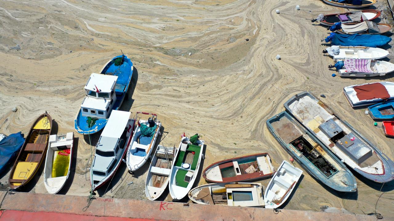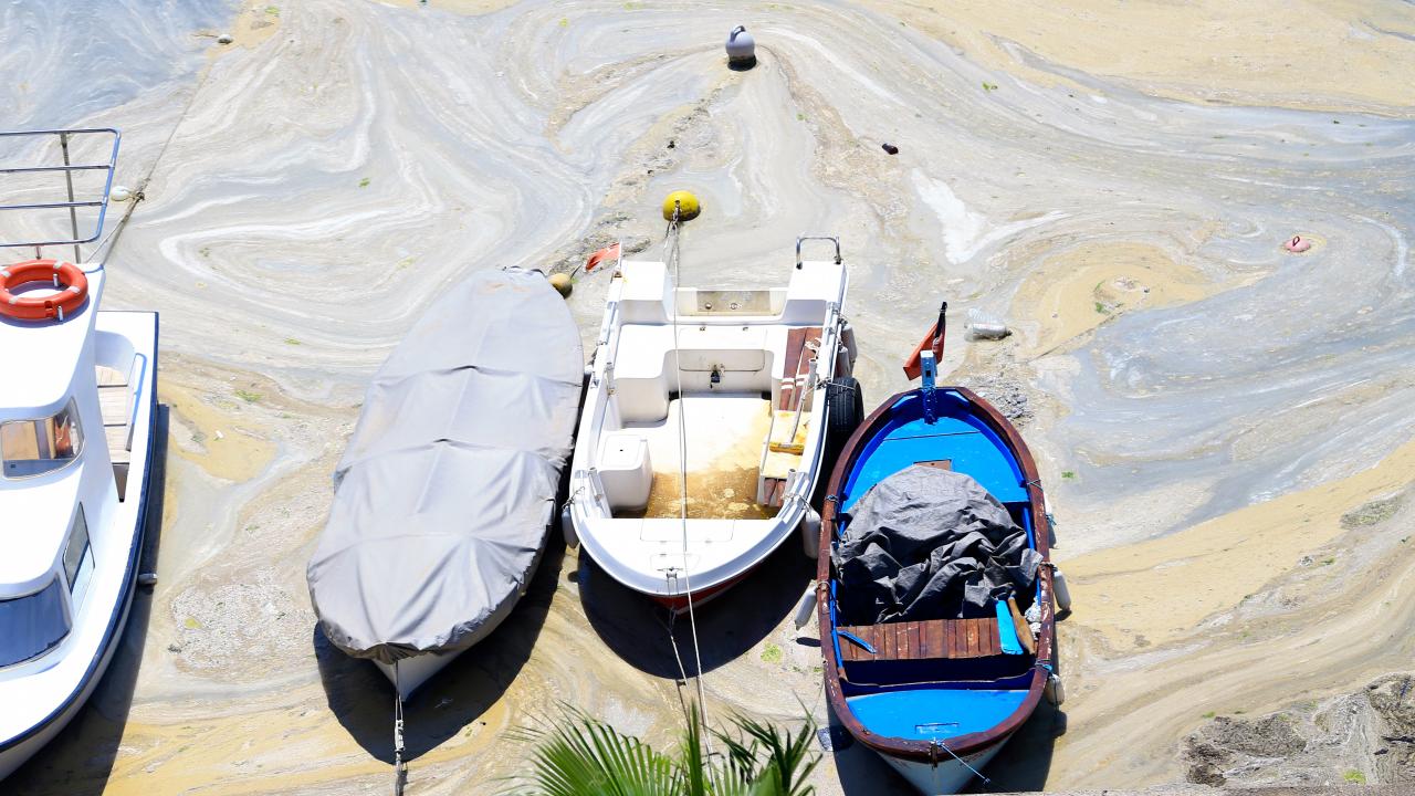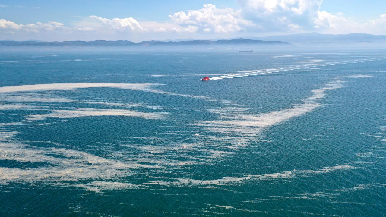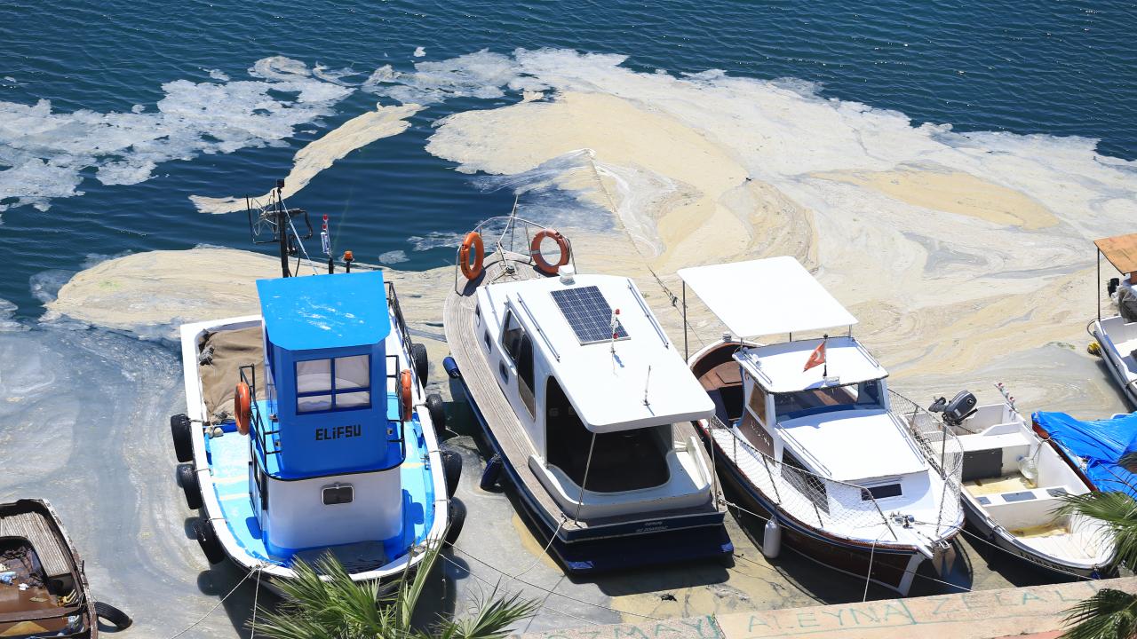 Denizde yer yer etkisini sürdüren müsilaj, dronla da görüntülendi.